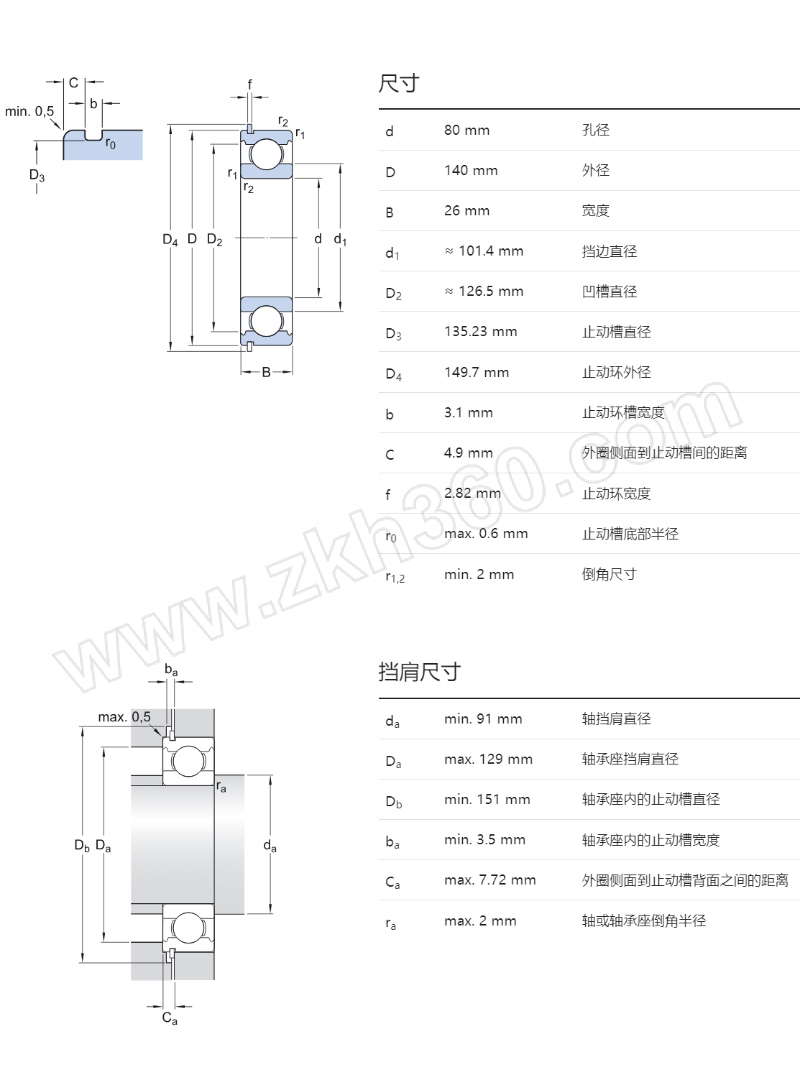 ·适用于高转速甚至极高转速的运行,而且非常耐用,无需经常维护。该类轴承摩擦系数小,极限转速高,尺寸范围与形式变化多样。 ·主要承受径向负荷,也可承受一定量的轴向负荷。