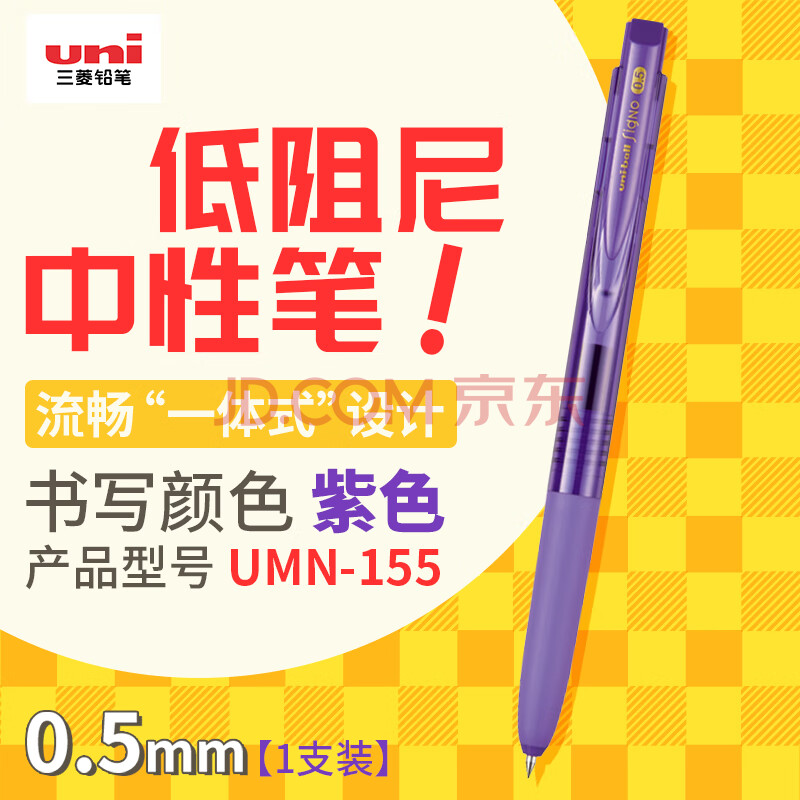 uni三菱 uni-ball UMN-155低阻尼按动彩色中性笔高颜值0.5mm签字笔商务学生水笔水性笔 紫色1支