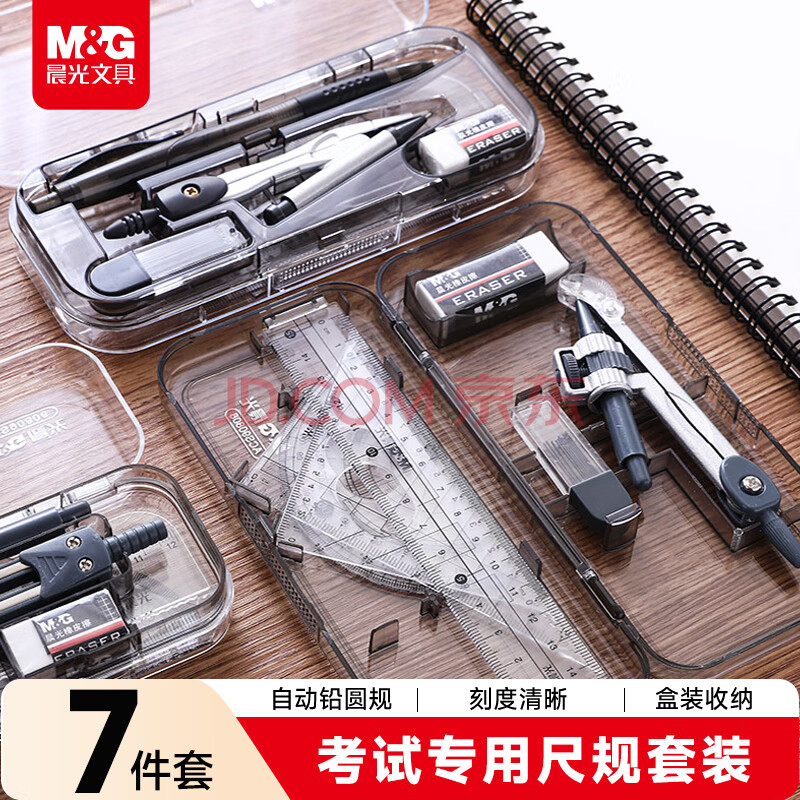 晨光(M&G)文具学生考试绘图套装(圆规+橡皮+直尺+三角尺/尺子+量角器)学习用品组合装 7件套ACS90808