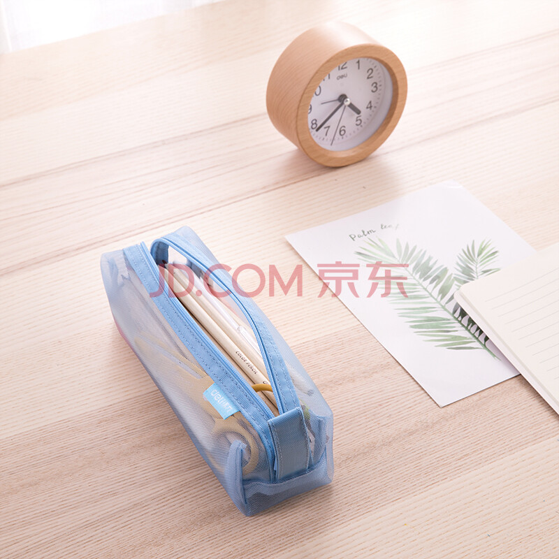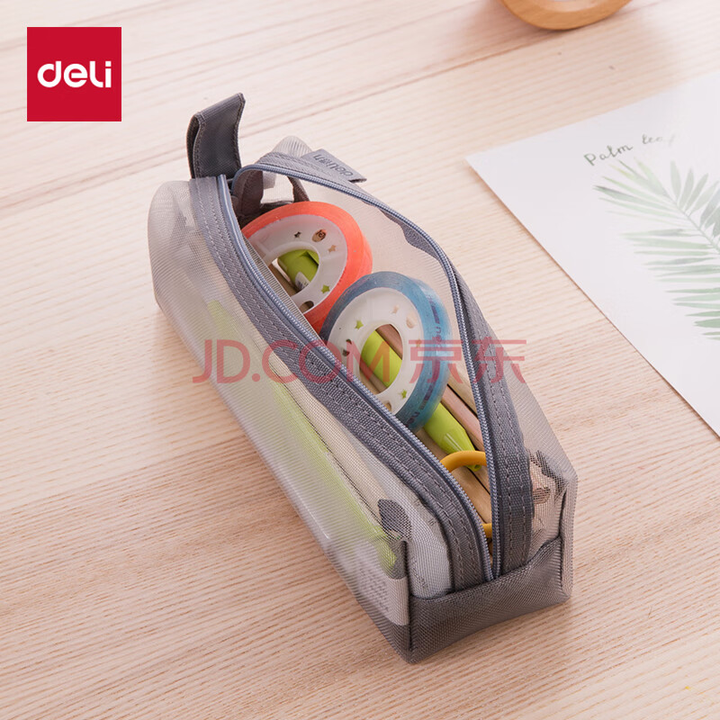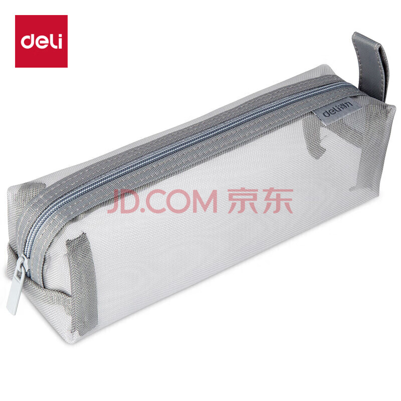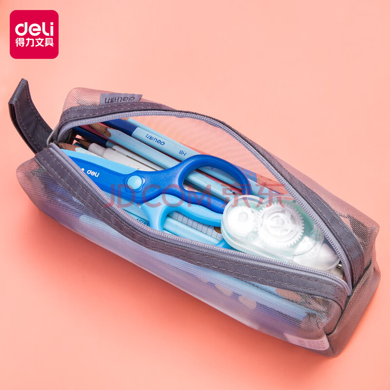 得力(deli)透明网纱笔袋考试/考试可用尼龙方型大容量手提铅笔收纳袋 中高考考研适用 格调灰开学必备