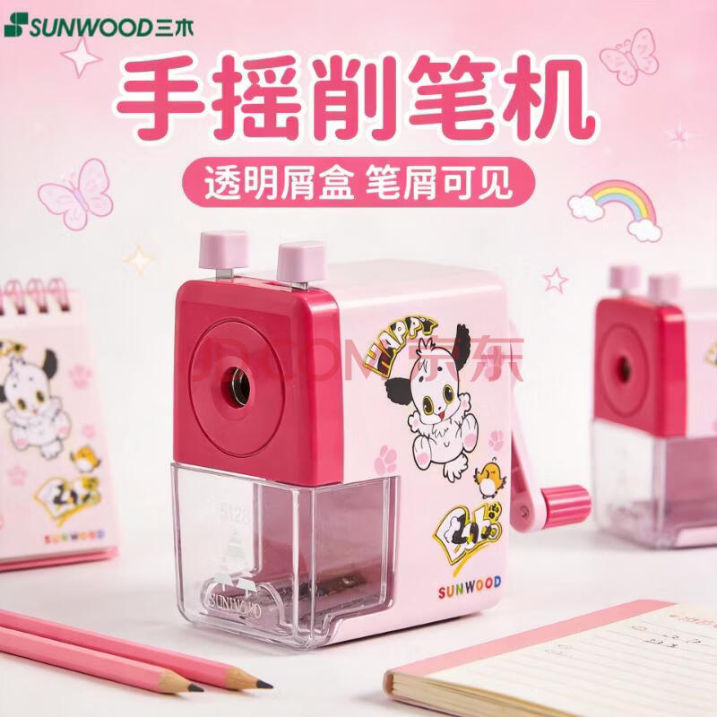 三木(SUNWOOD)卡通手摇削铅笔机/削笔机/削笔器/学生卷笔刀/转笔刀/铅笔刀 粉色 5128
