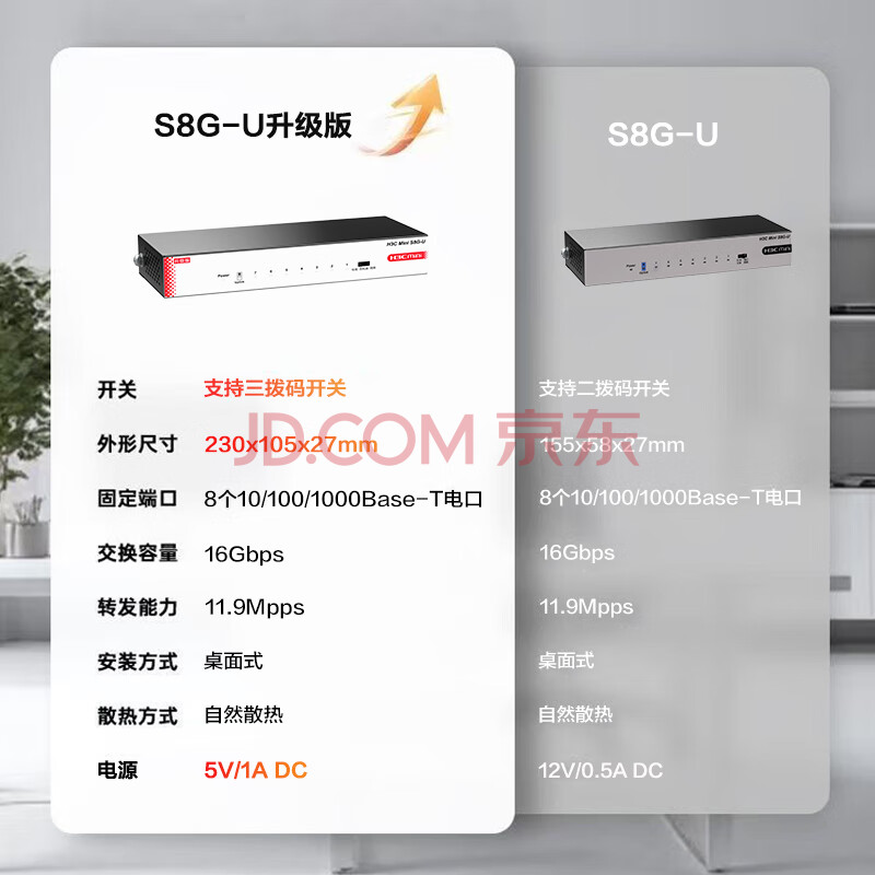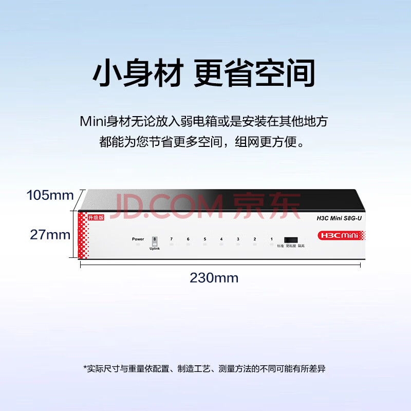 华三(H3C)8口千兆交换机 非网管企业级交换器 监控网络网线分线器 家用宿舍分流器 Mini S8G-U
