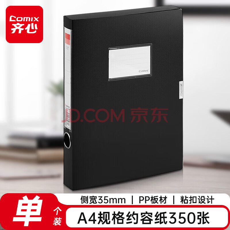 齐心(Comix) 35mm粘扣档案盒/文件盒/资料盒A4 黑色A1248