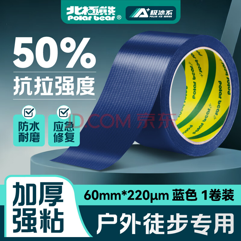 北极熊(Polar bear)强力布基胶带大力胶易手撕 蓝色60mm*15y(13.7米)1卷 防台风篷布修补贴地毯固定防水胶带CL-609L