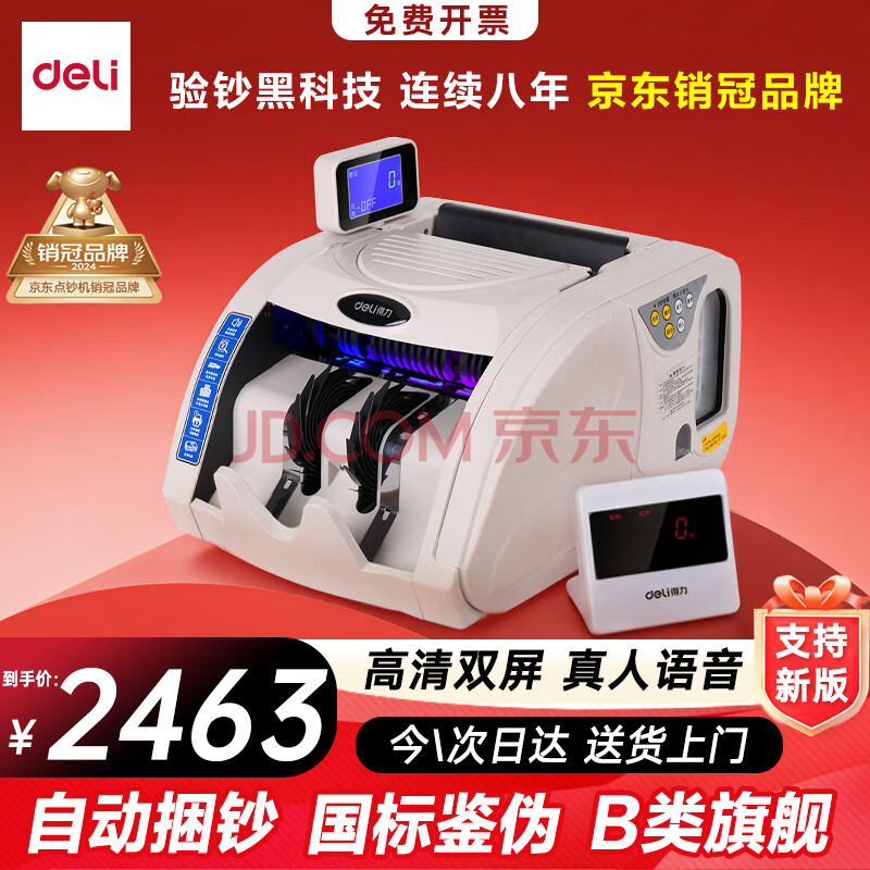 得力点钞机 验钞点钞机小型便携 验钞支持新版人民币 银行专用商用自动捆钱捆钞语音国标B类旗舰3920S