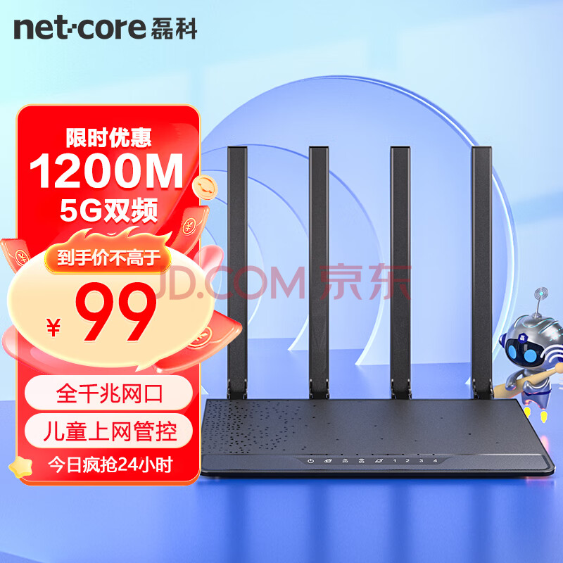 磊科(netcore)N3双千兆无线路由器 5G双频1200M 智能高速穿墙wifi 家用中小户型全屋覆盖 信号中继 儿童上网控制