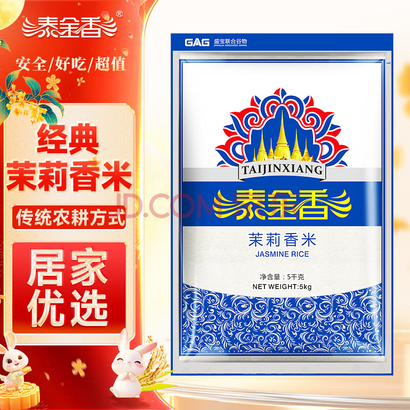 泰金香 茉莉香米 大米5KG 长粒米 香米 大米10斤