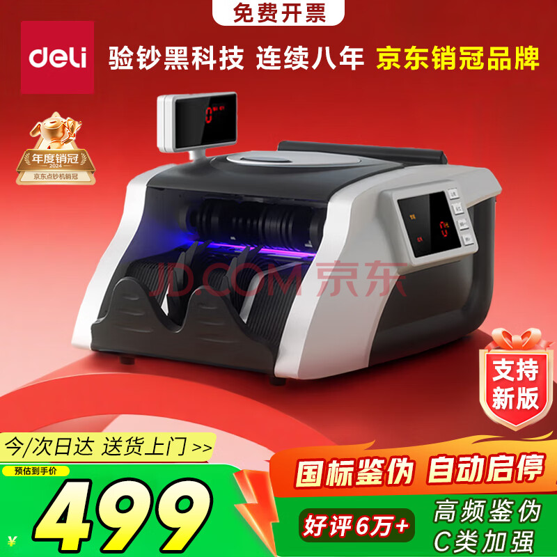 得力点钞机 验钞点钞机小型便携验钞支持新版人民币 银行专用收银商用数钱机双屏C类技术升级92606S