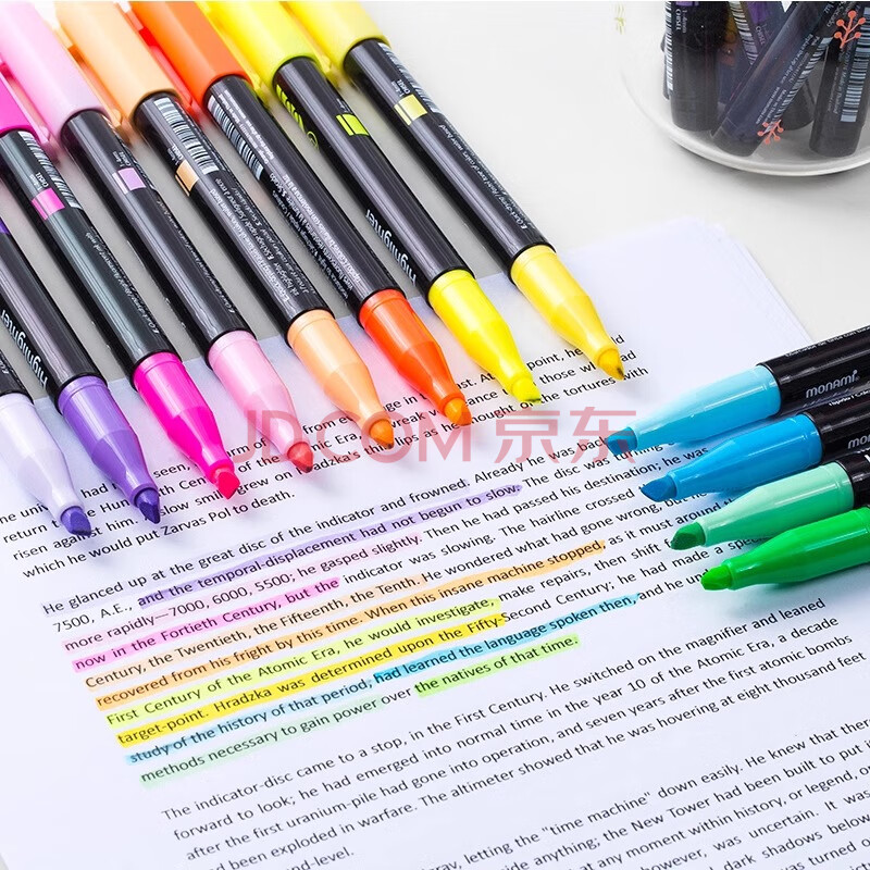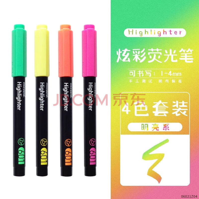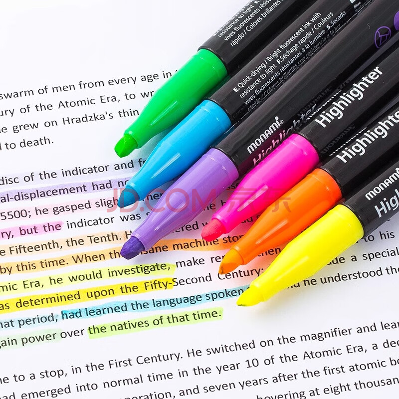 【开学必备】慕那美(monami)荧光笔手账笔学生用划重点笔 4色套装06021Z04