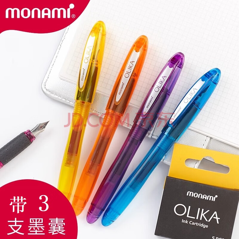 【开学必备】慕那美(monami)OLIKA透明彩色小钢笔0.5mm学生用练字书写钢笔套装 紫色02099