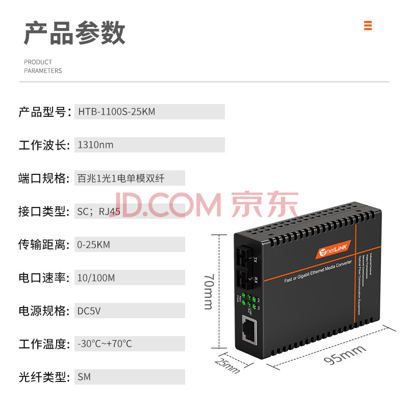 netLINK HTB-1100S-25KM 百兆单模双纤光纤收发器 工程电信级光电转换器 25公里 一台
