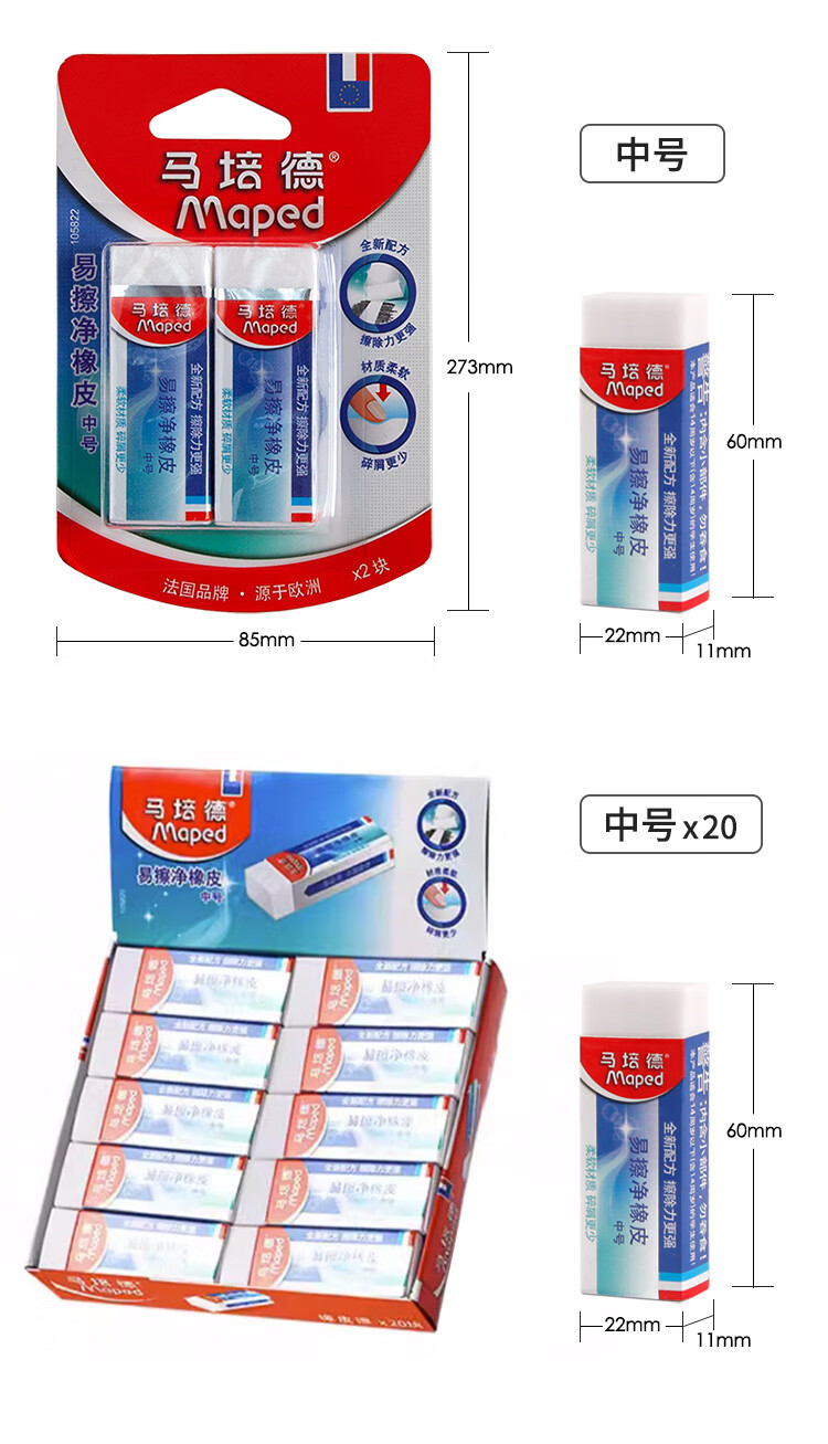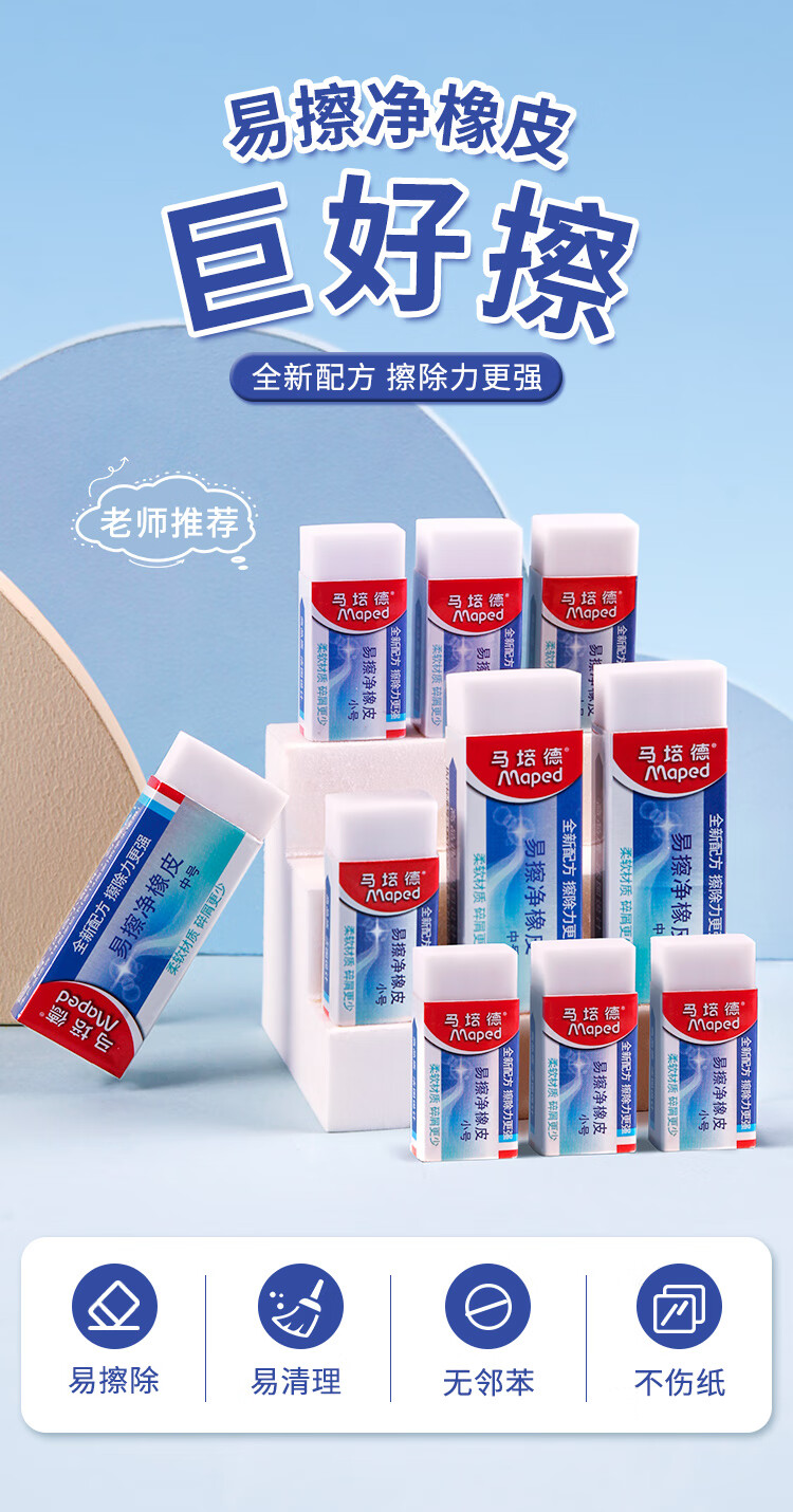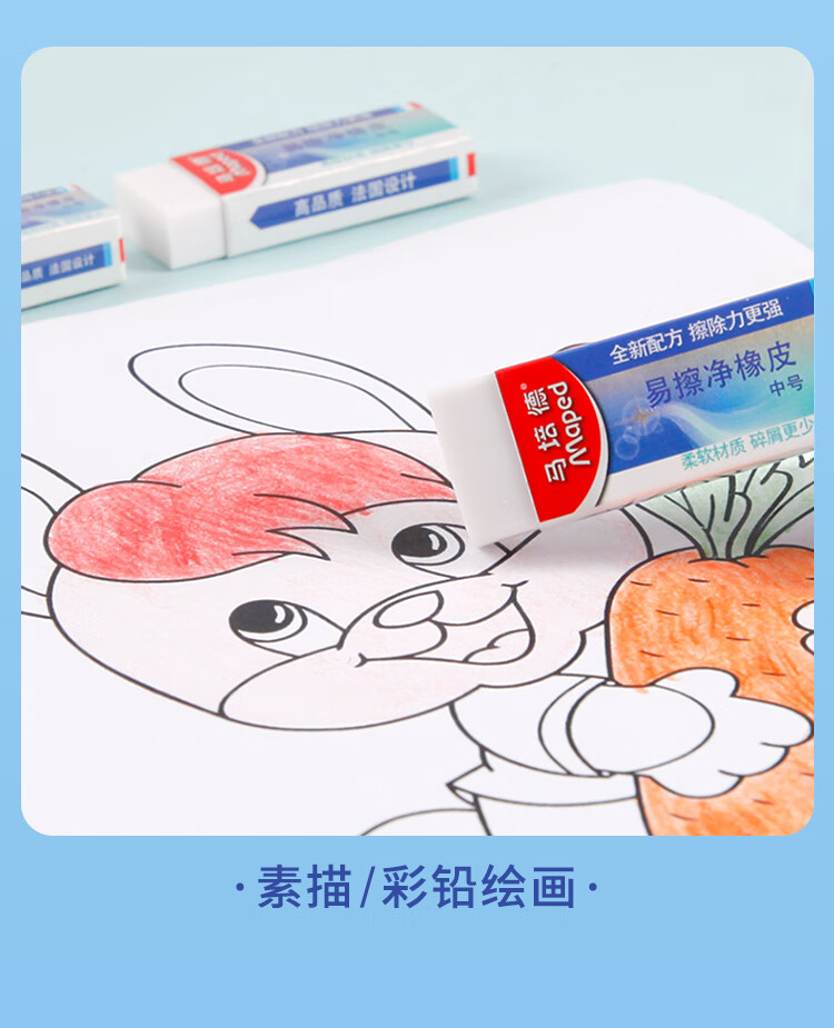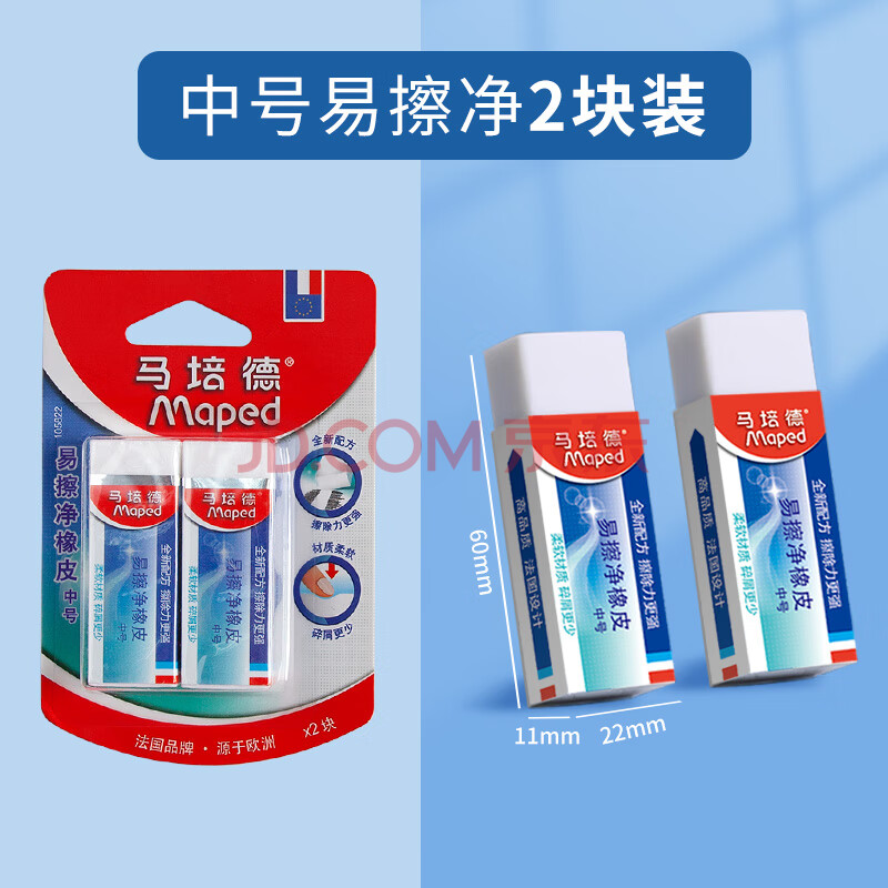 马培德Maped 易擦净橡皮擦中号2块 学生绘图考试美术橡皮擦干净少屑无痕小学生专用象皮儿童文具105822CH