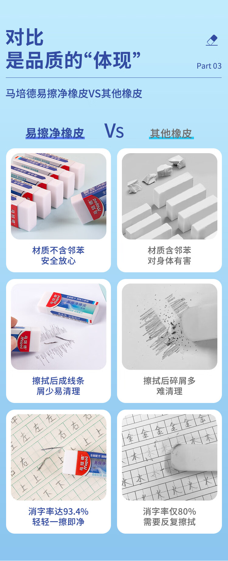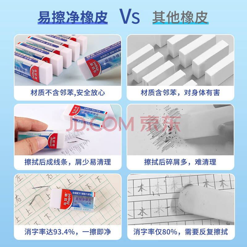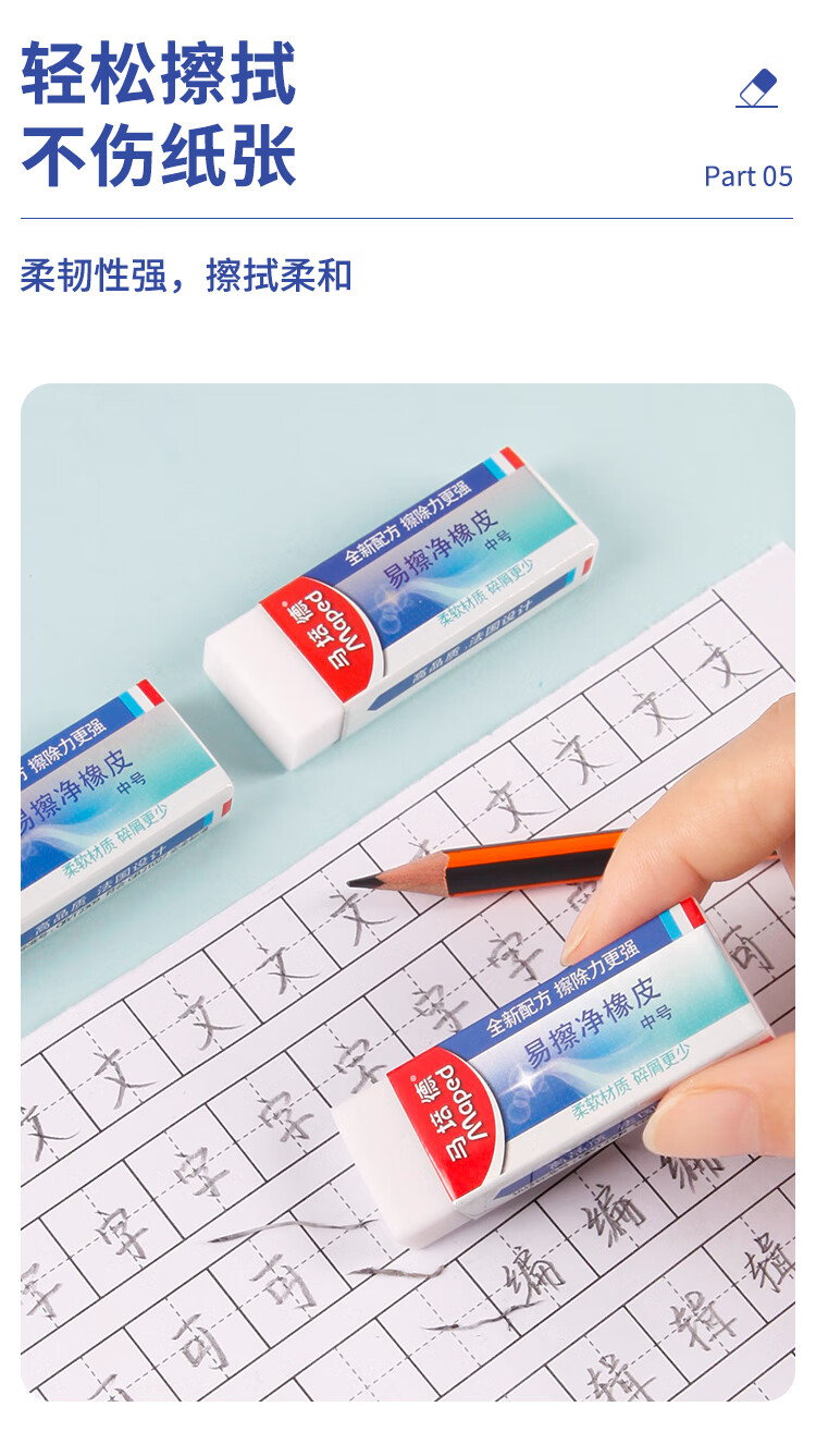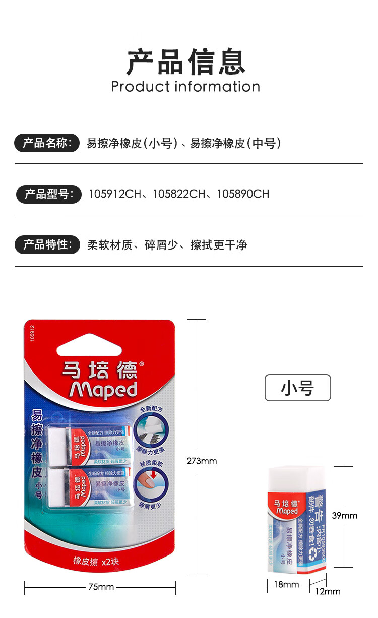 马培德Maped 易擦净橡皮擦中号2块 学生绘图考试美术橡皮擦干净少屑无痕小学生专用象皮儿童文具105822CH