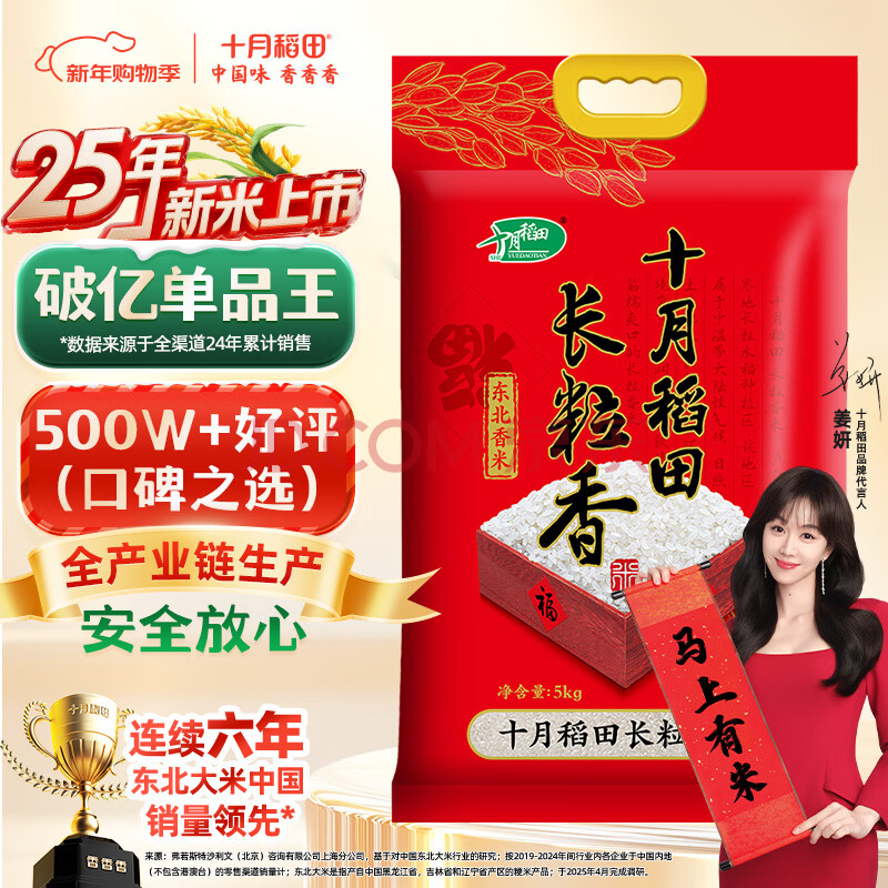 十月稻田 2025年新米 长粒香大米 10斤(东北大米 香米 5公斤/十斤)