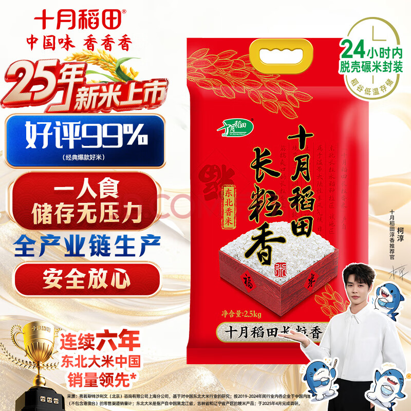 十月稻田 2025年新米 长粒香大米 5斤(东北大米 香米 2.5公斤/五斤)