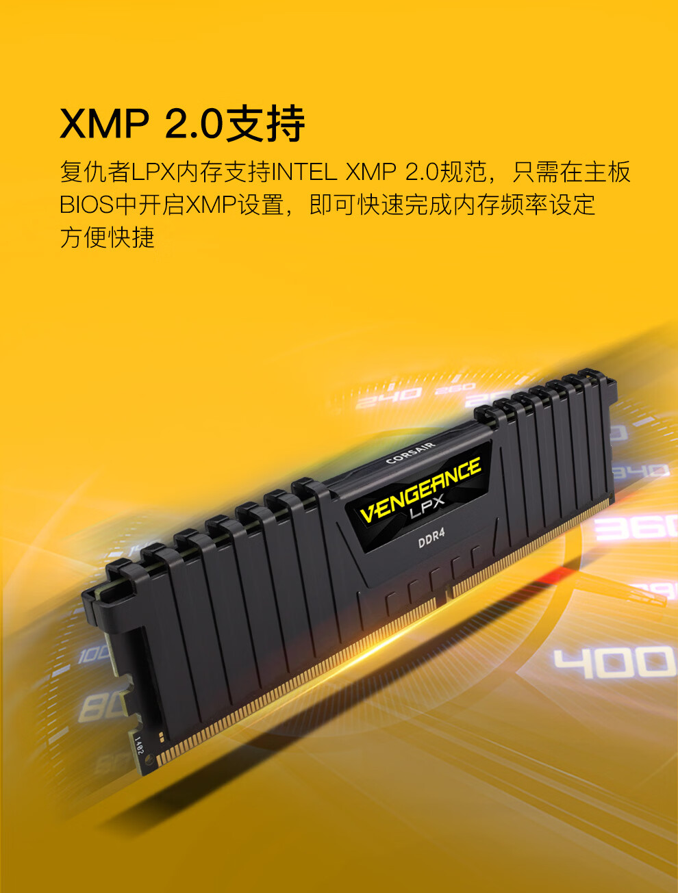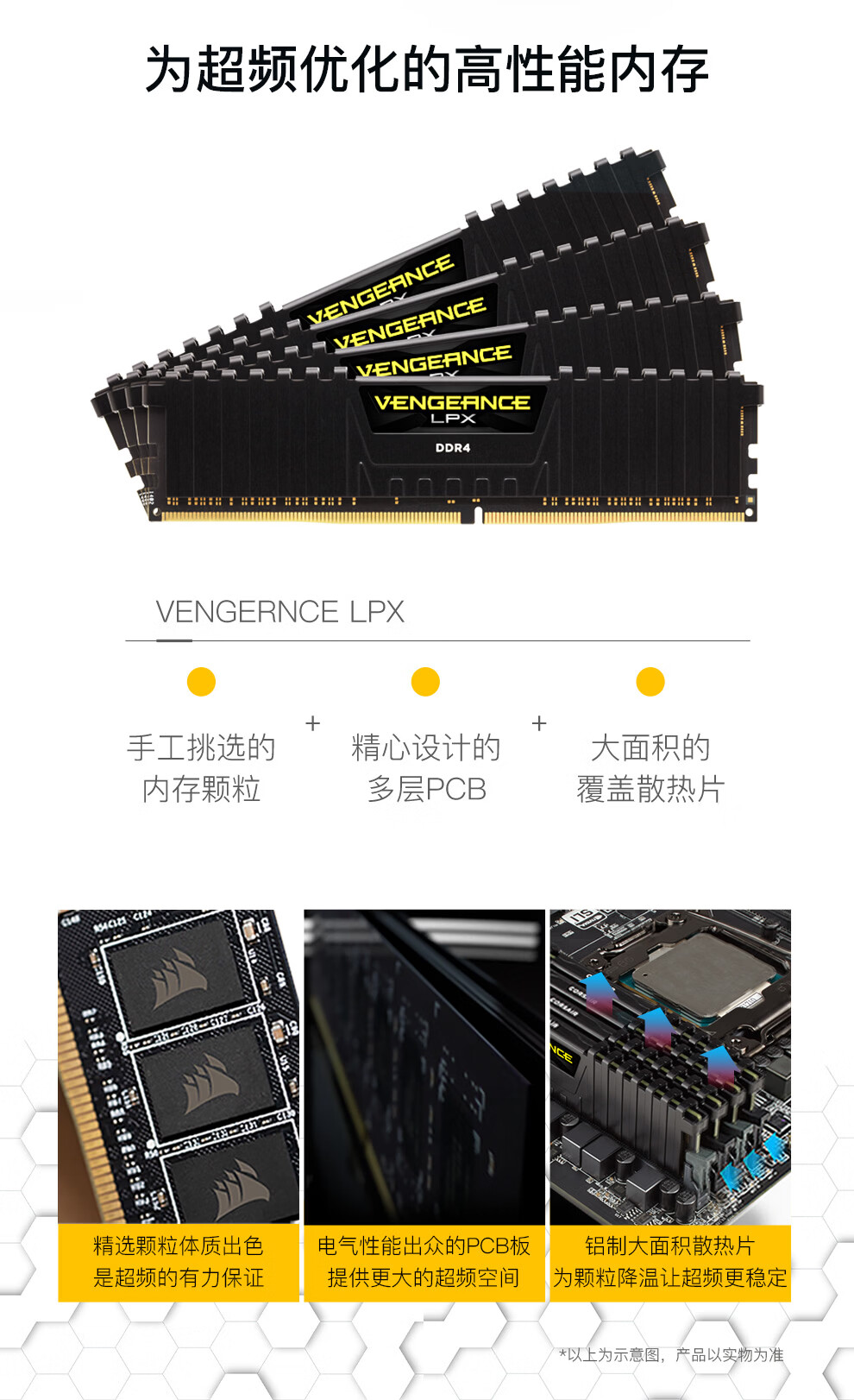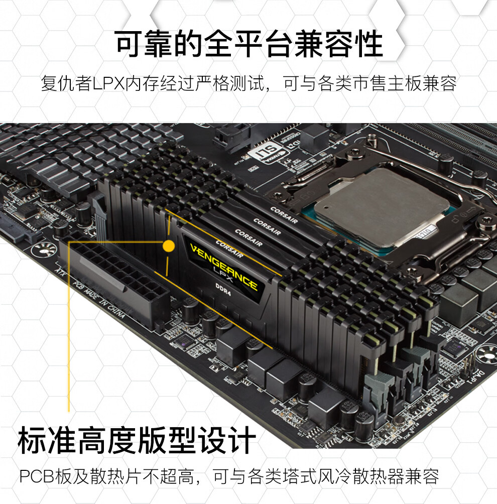 美商海盗船 (USCORSAIR) 16GB(8G×2)套装 DDR4 3200 台式机内存条 复仇者LPX 游戏条 C16