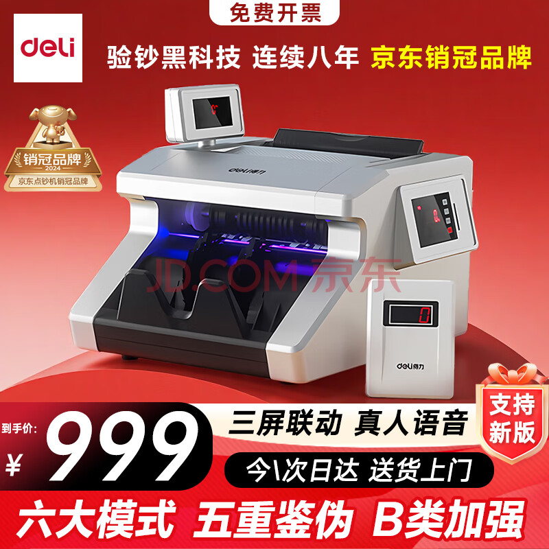 得力点钞机 验钞点钞机小型便携 验钞支持新版人民币 银行专用收银商用家用数钱机B类技术增配33026S