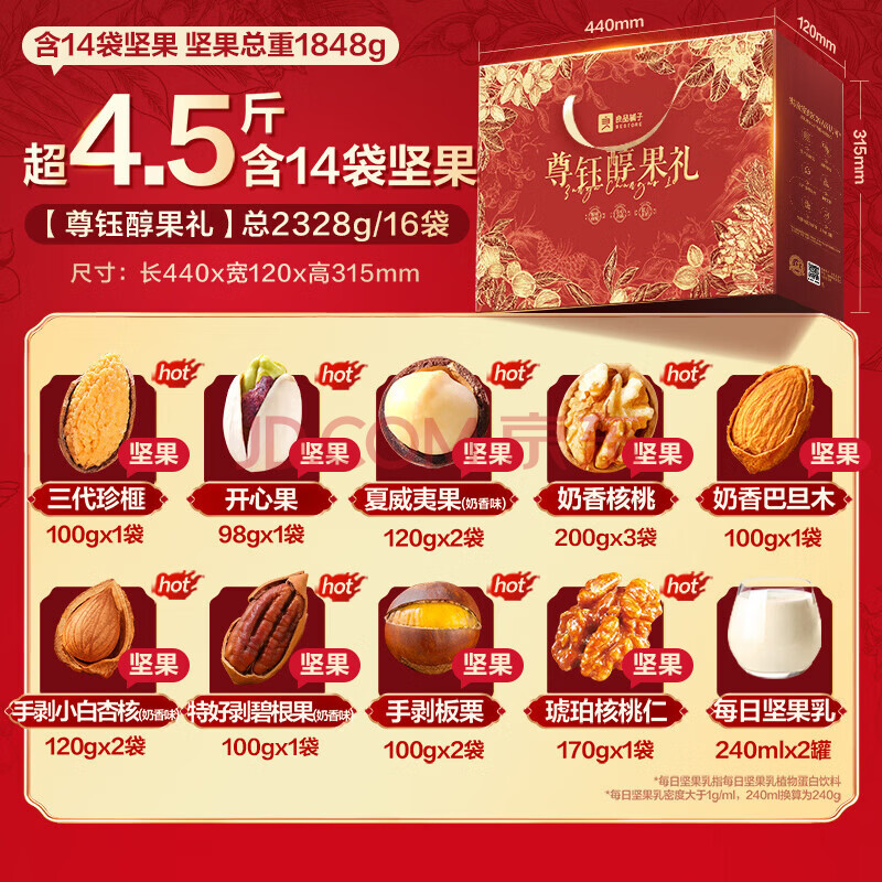 良品铺子坚果零食礼盒组合2328g零食大礼包开心果每日坚果年货节送礼团购