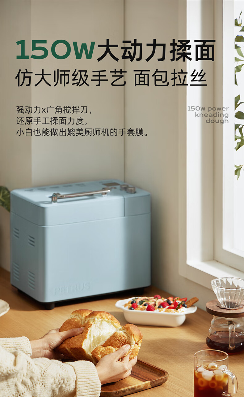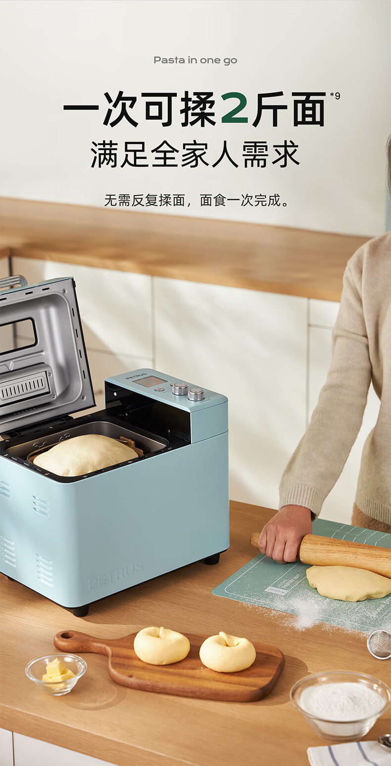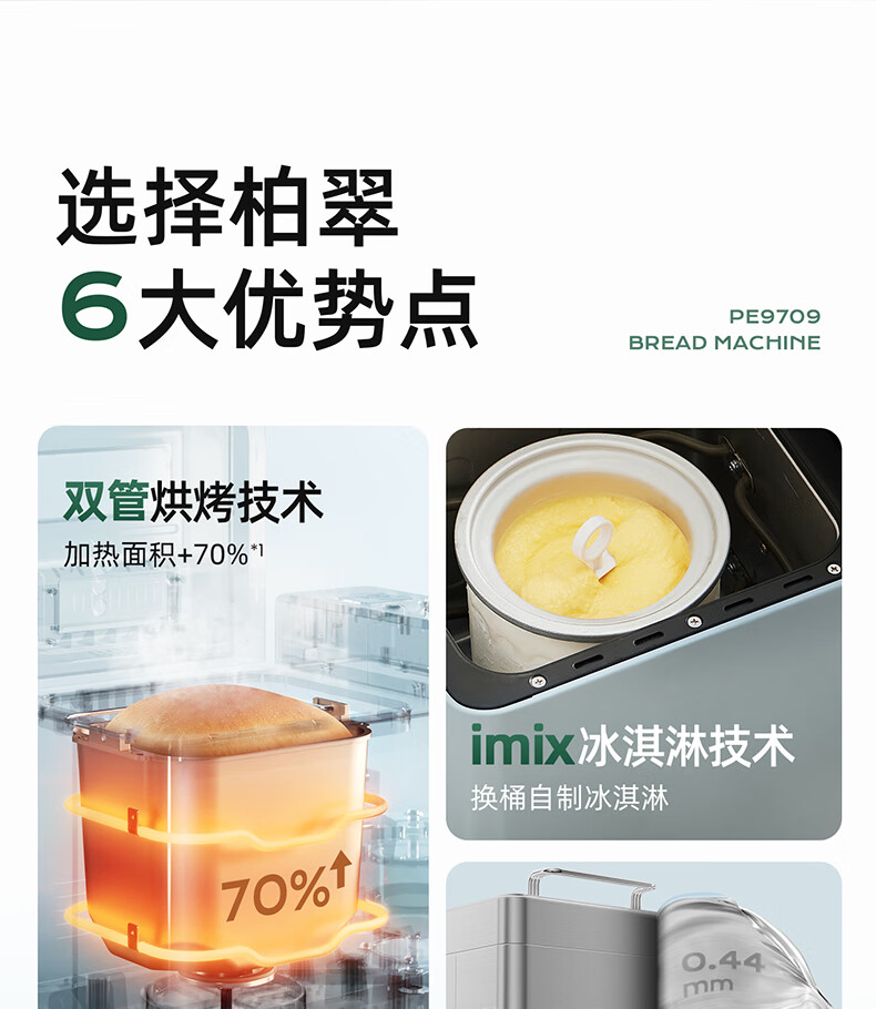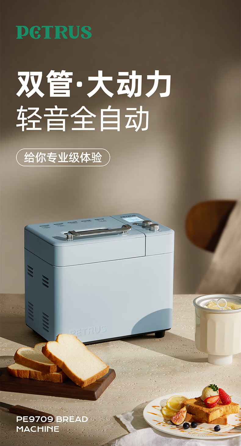 柏翠(petrus)面包机烤面包机家用全自动多功能和面机多士炉冰淇淋肉松PE9709 中秋送礼