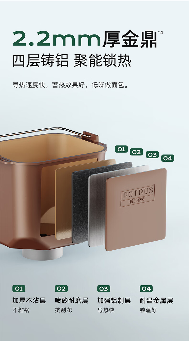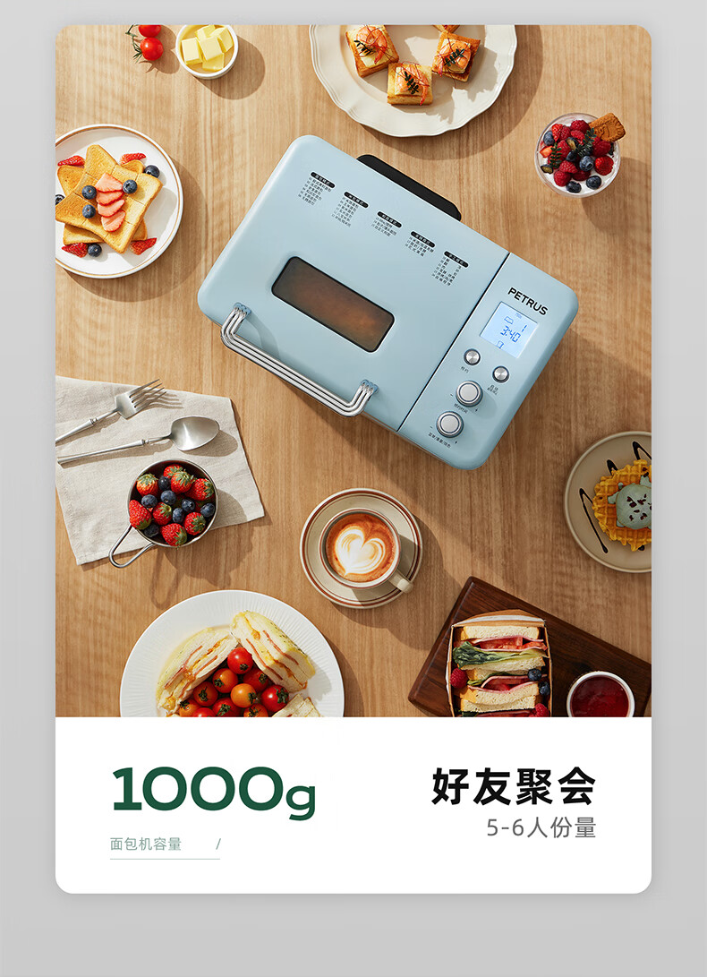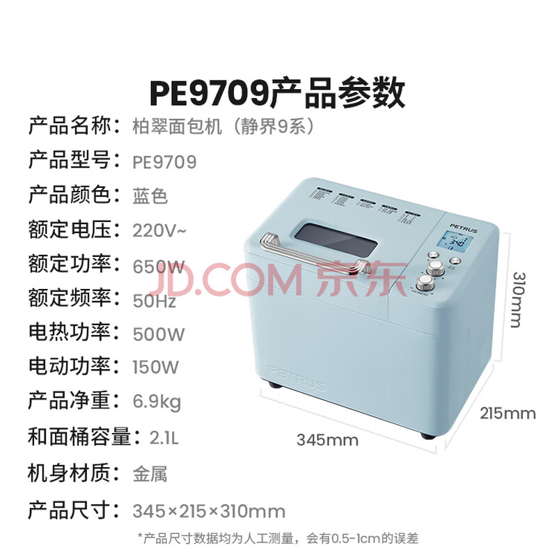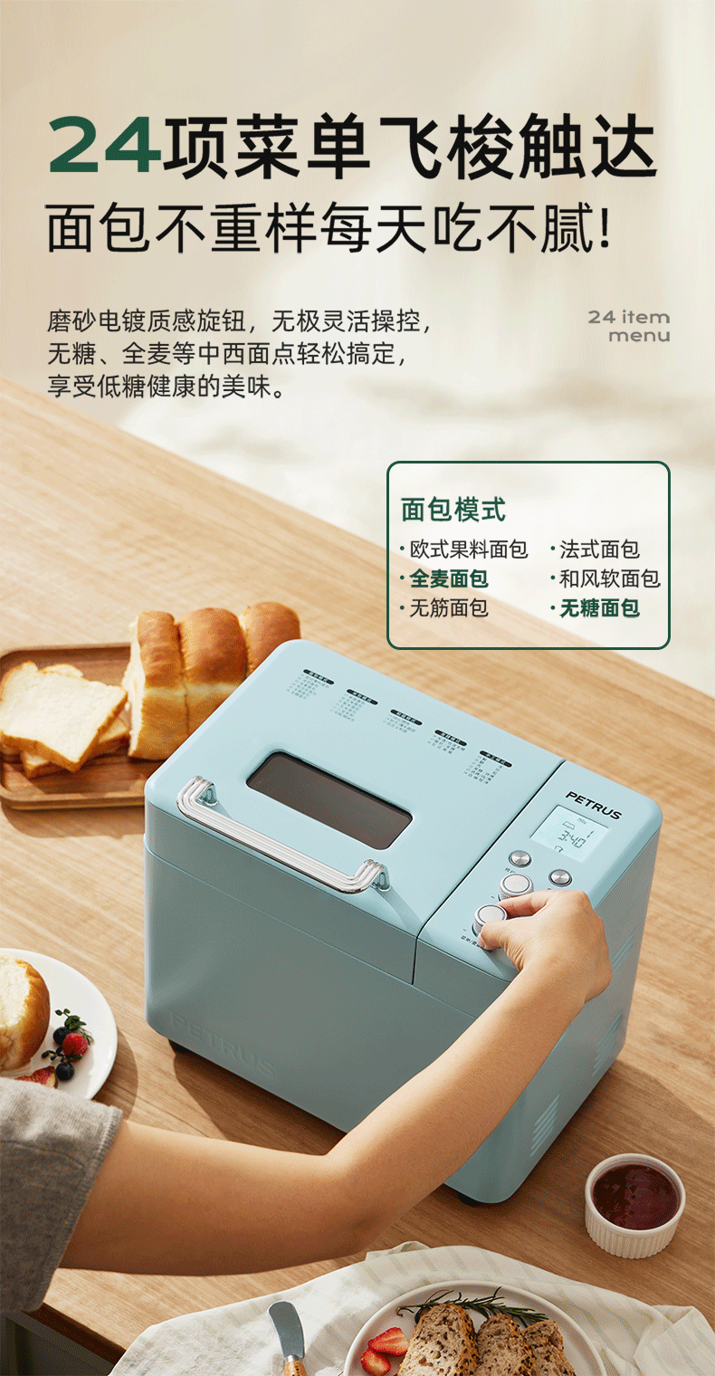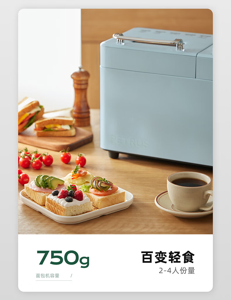 柏翠(petrus)面包机烤面包机家用全自动多功能和面机多士炉冰淇淋肉松PE9709 中秋送礼