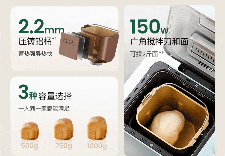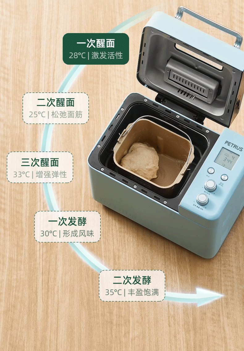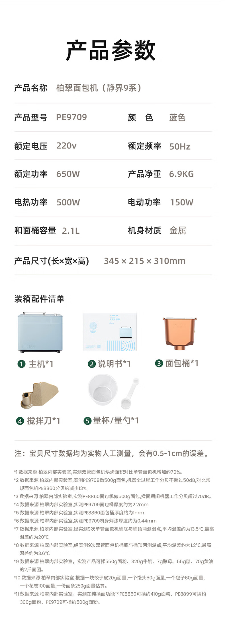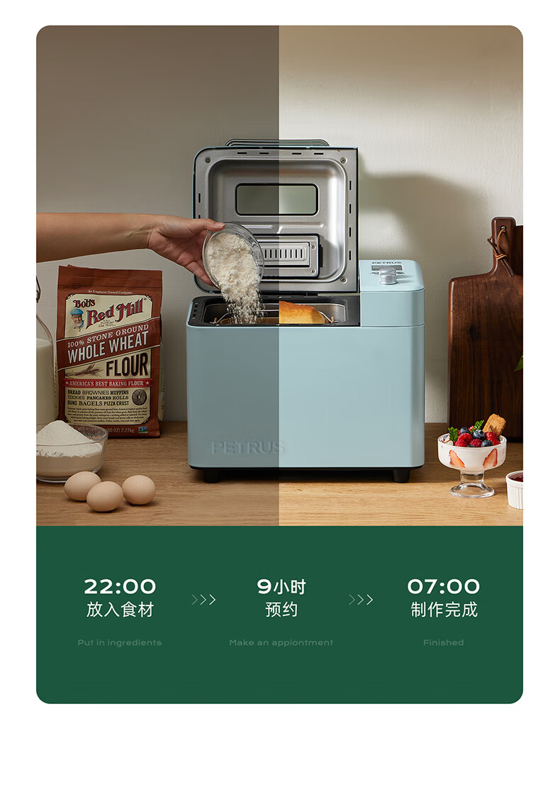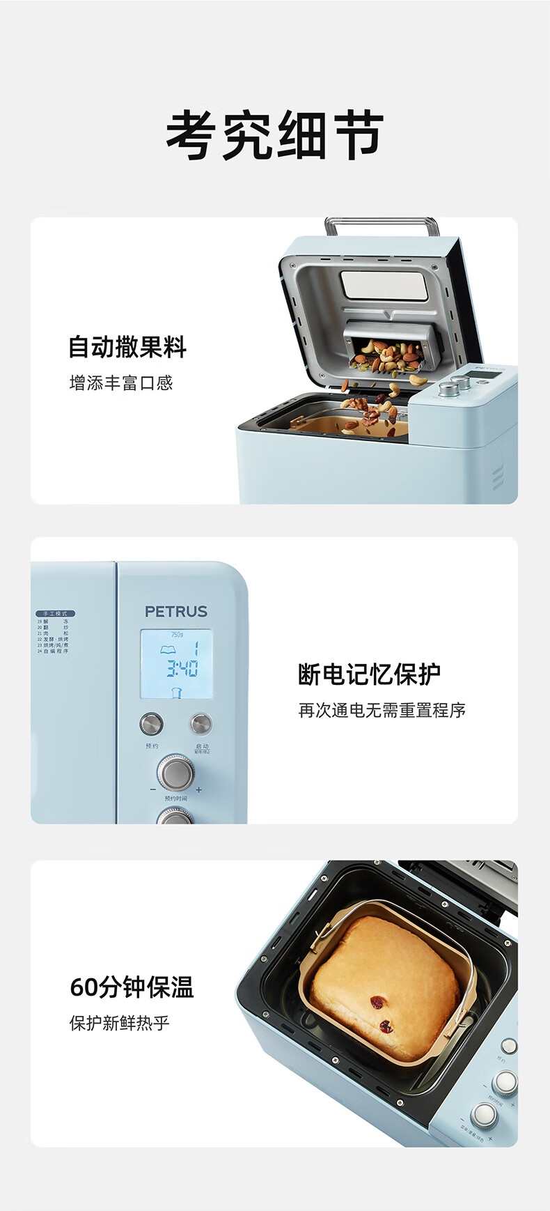 柏翠(petrus)面包机烤面包机家用全自动多功能和面机多士炉冰淇淋肉松PE9709 中秋送礼