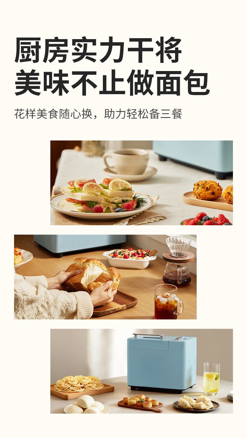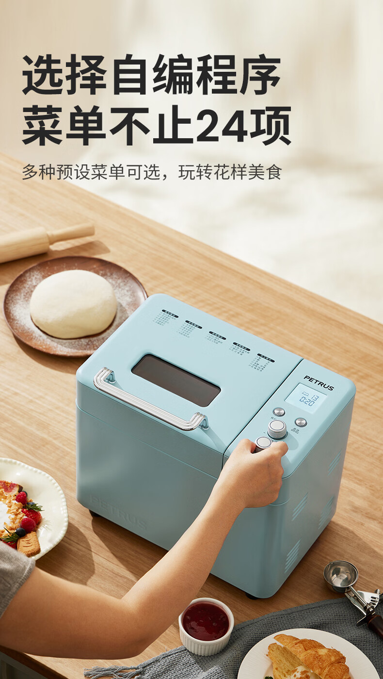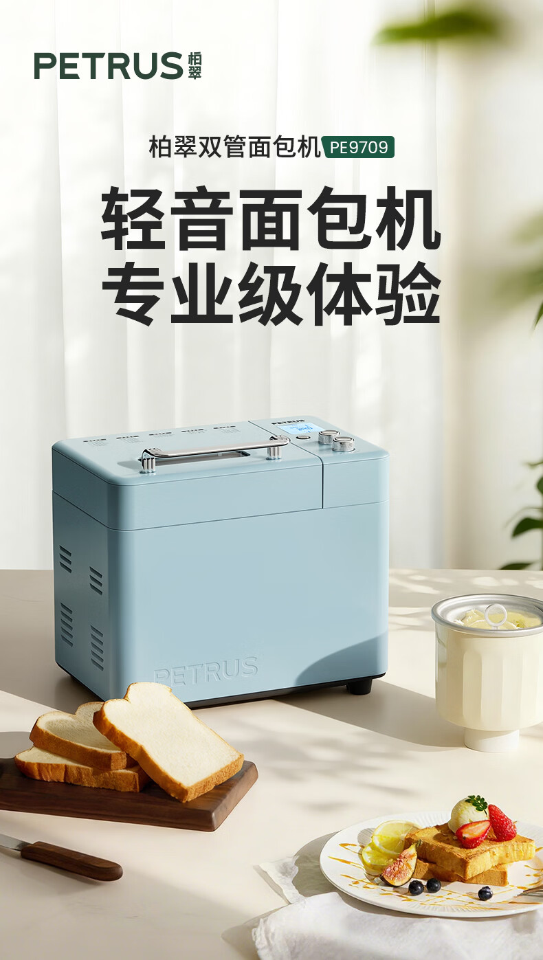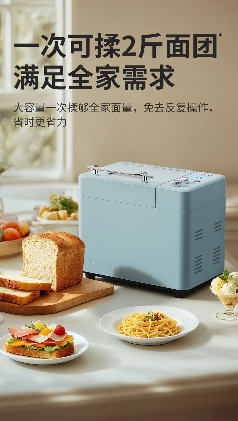 柏翠(petrus)面包机烤面包机家用全自动多功能和面机多士炉冰淇淋肉松PE9709 新年礼物