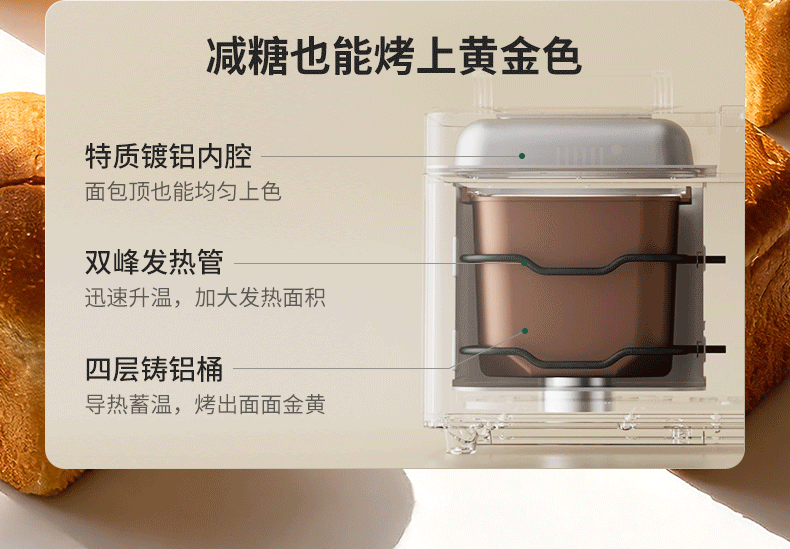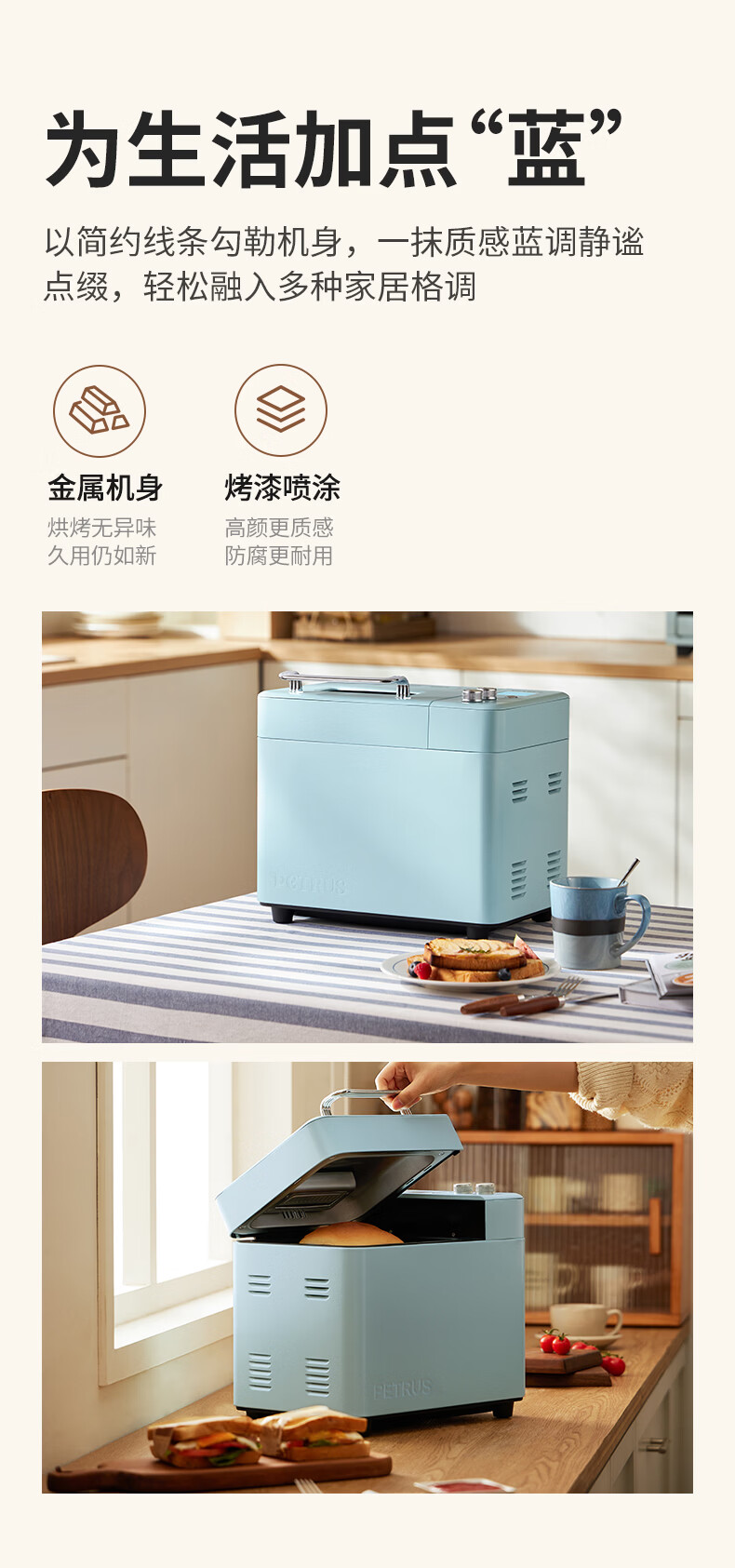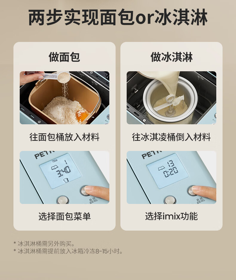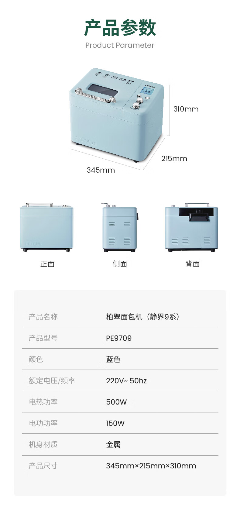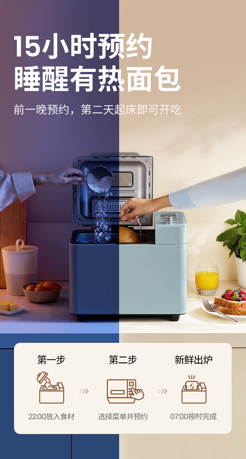 柏翠(petrus)面包机烤面包机家用全自动多功能和面机多士炉冰淇淋肉松PE9709 新年礼物
