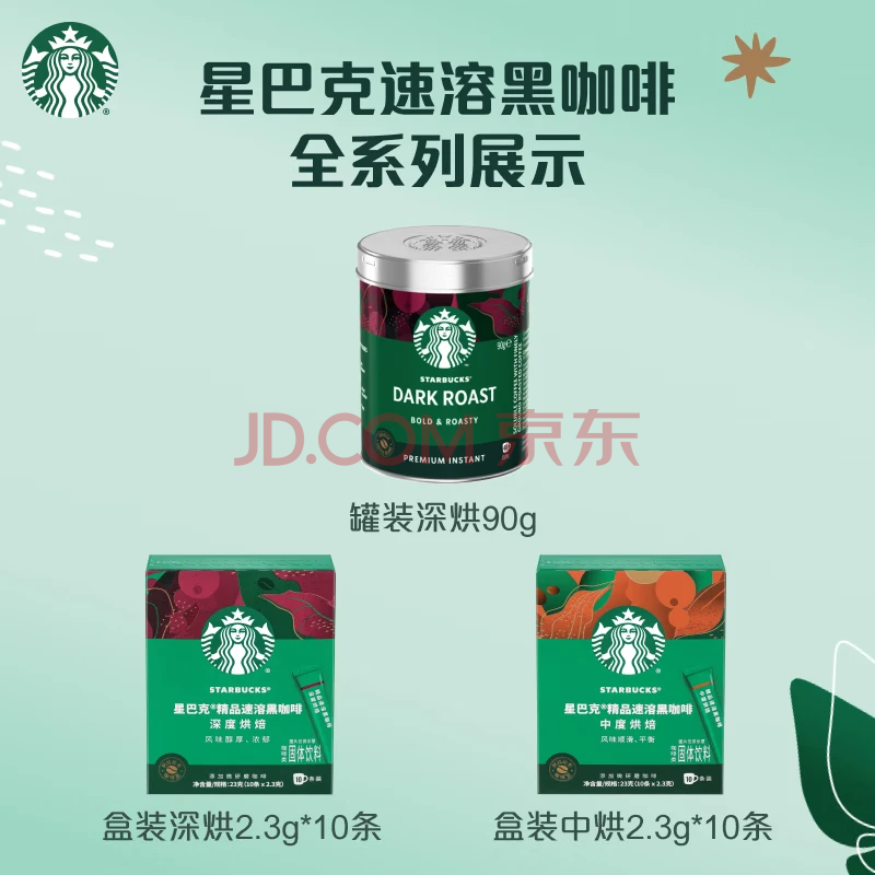星巴克(Starbucks)0糖低脂精品速溶黑咖啡深烘2.3g*10条 美式运动健身燃减