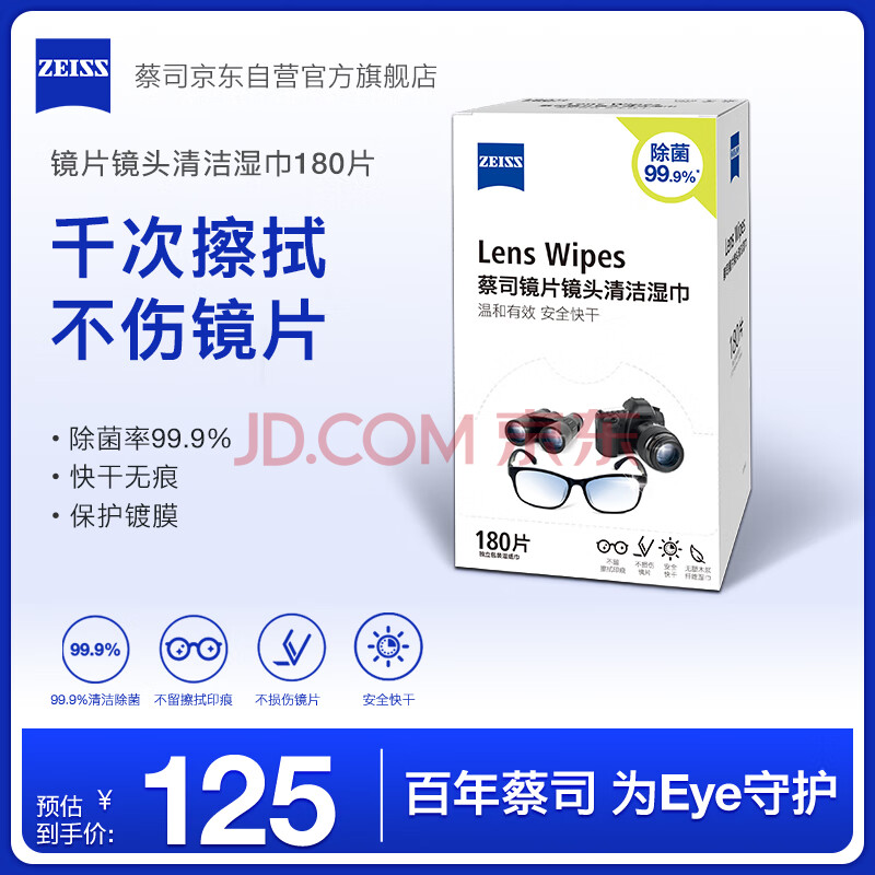 蔡司(ZEISS)擦镜纸镜片擦拭湿巾相机镜头清洁湿巾纸180片