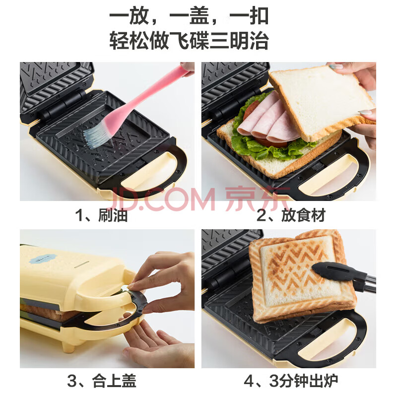 小熊(Bear)三明治机早餐机 面包机电饼铛 华夫饼机吐司机可拆双盘轻食 加厚封边多功能双面热压DBC-P05B1