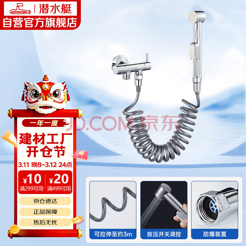 潜水艇(Submarine)F401B 三角阀套装一进二出角阀马桶喷枪妇洗器马桶角阀喷枪套餐