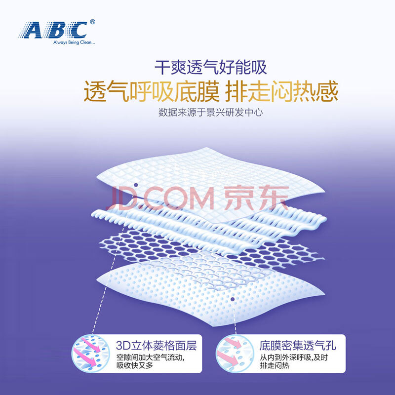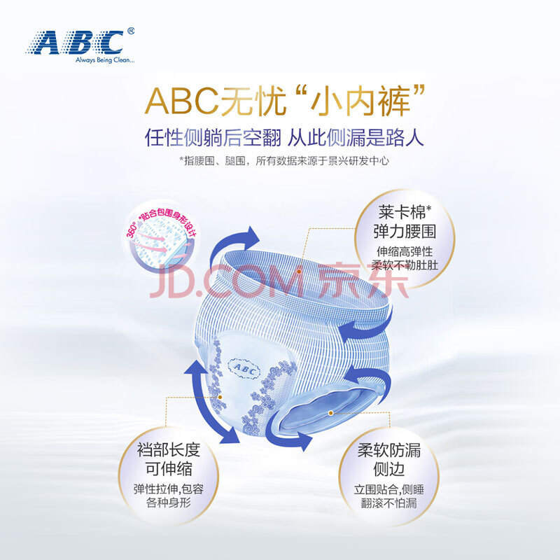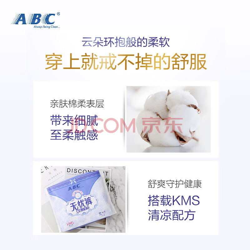 ABC无忧裤超长透气裤型卫生巾套装京东自营安心裤M-L码5包10片