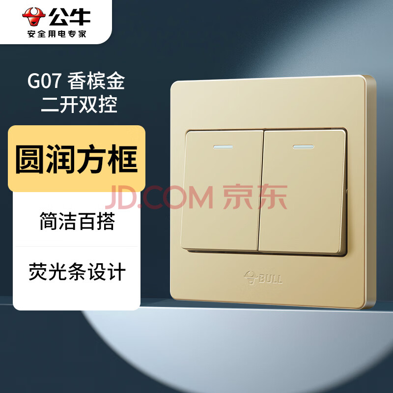 公牛(BULL)墙壁开关 G07系列 二开双控开关 86型面板G07K212C(U6) 香槟金