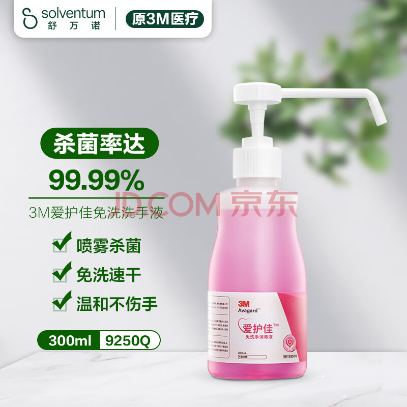 3M 爱护佳免洗手消毒液洗手液酒精杀菌消毒便携 300ml瓶装 9250Q