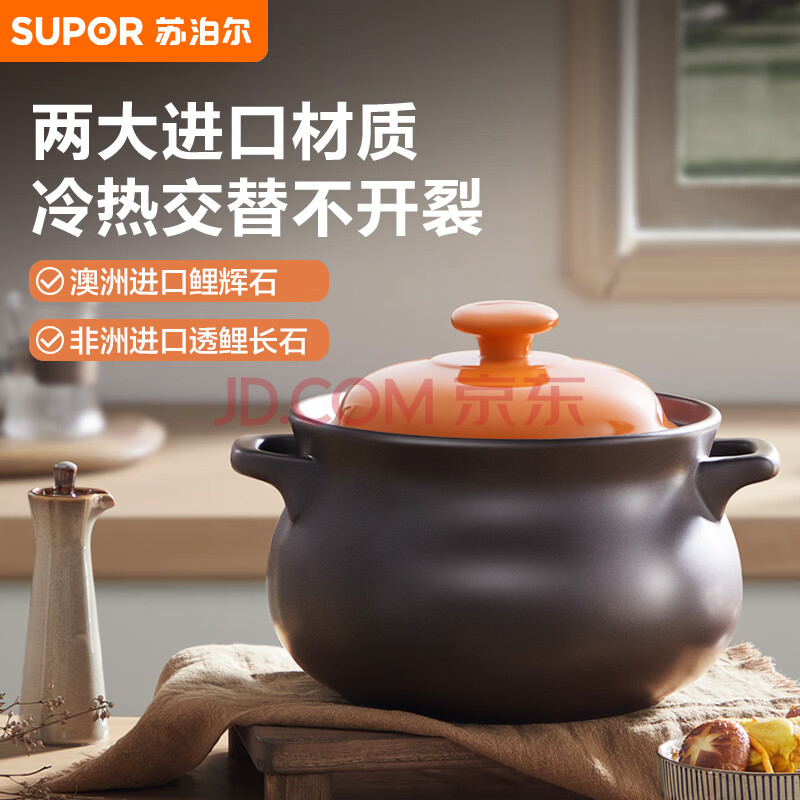 苏泊尔(SUPOR)砂锅煲汤锅炖锅3.0L养生煲耐高温不开裂陶瓷煲
