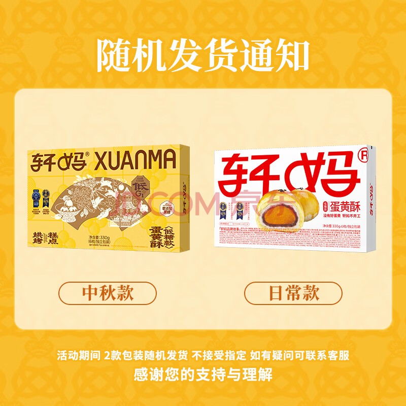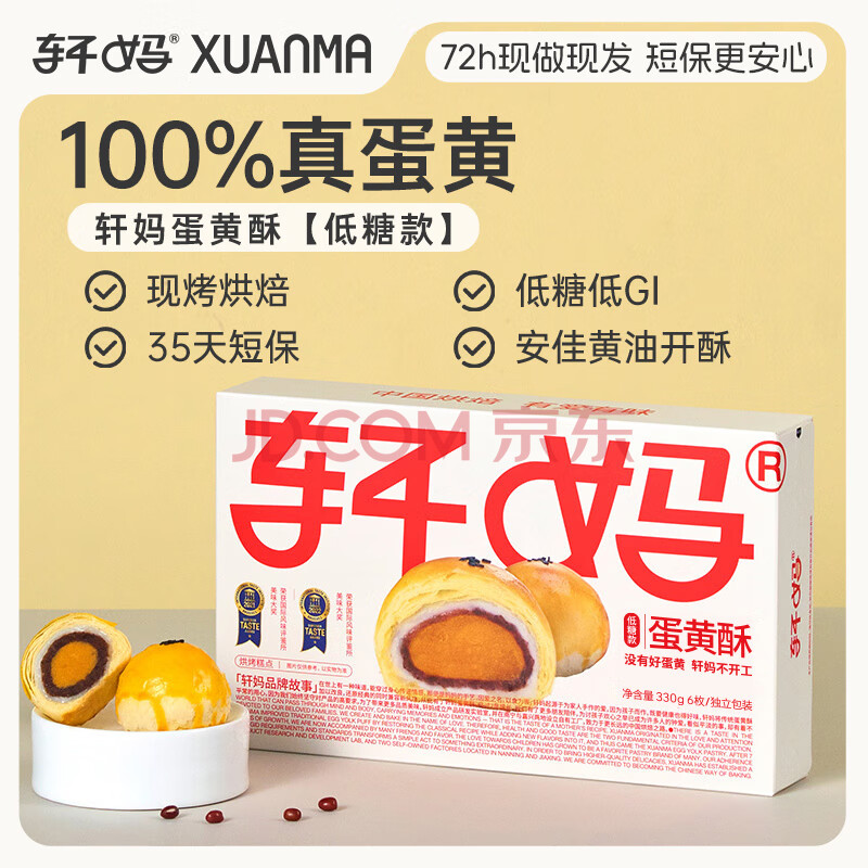 轩妈家短保低糖蛋黄酥红豆味雪媚娘中式糕点零食6枚*55g源头直发包邮