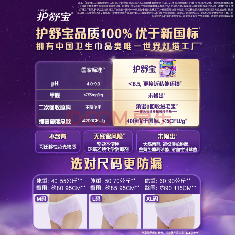 护舒宝(Whisper)超长夜用 考拉裤裤女学生安心裤安睡裤型卫生巾 M-L码 6片装