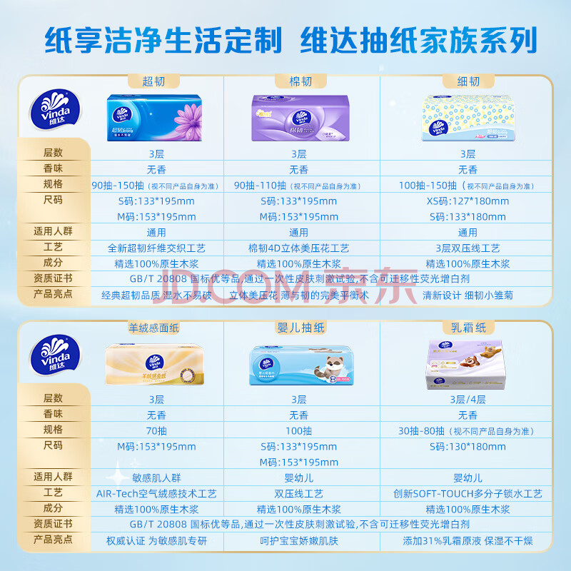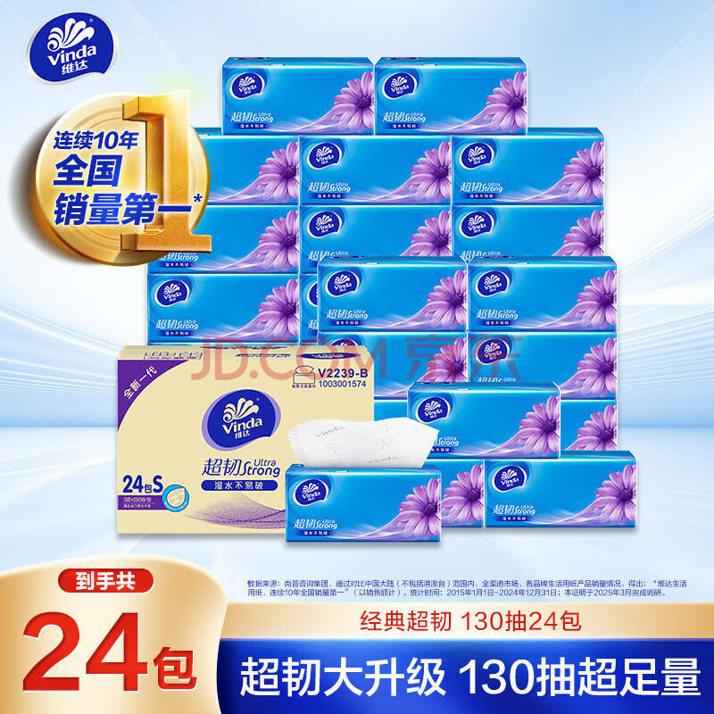维达(Vinda)抽纸【孙颖莎推荐】超韧3层130抽*24包S码 纸巾卫生纸 餐巾纸整箱