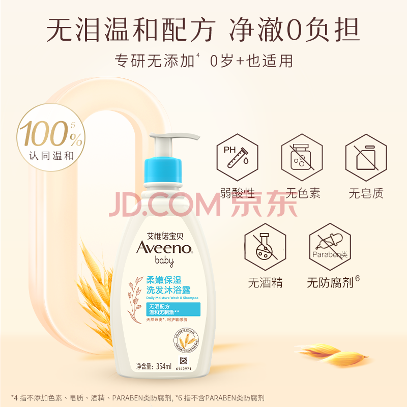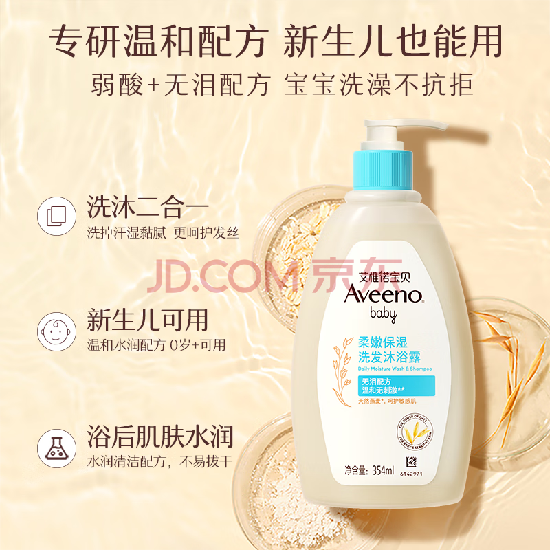 艾惟诺(Aveeno)艾维诺儿童洗发水沐浴露二合一婴儿洗沐二合一护肤0-6-12岁 354ml