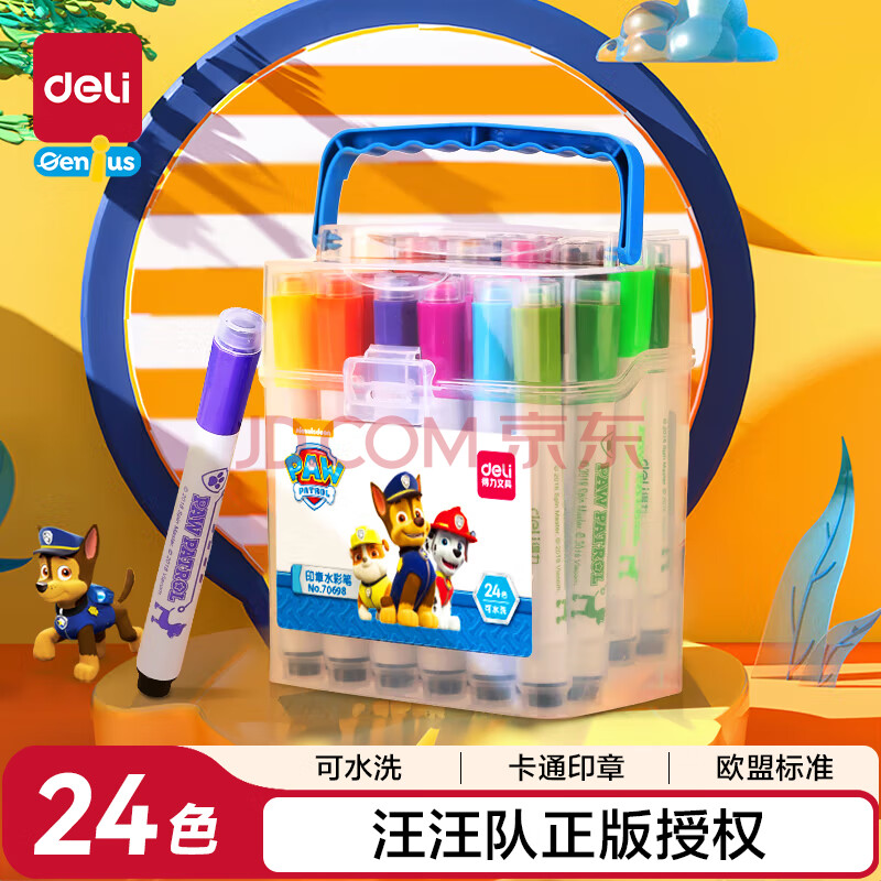 得力(deli)汪汪队立大功24色可水洗印章水彩笔生日礼物开学玩具70698