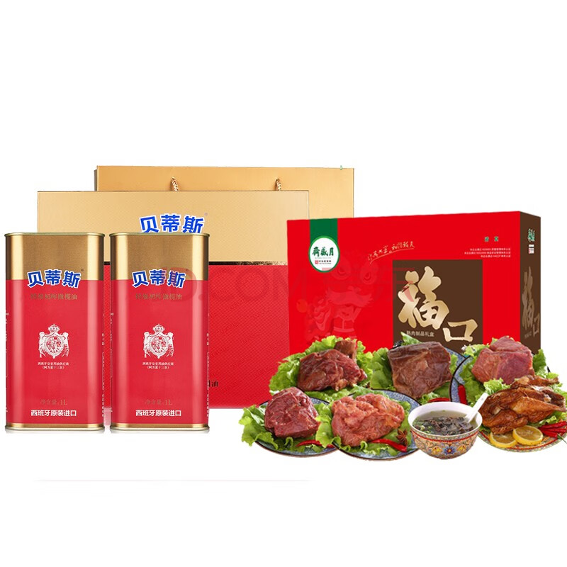 贝蒂斯(BETIS)特级初榨橄榄油礼盒 食用油 西班牙原装进口 1L*2瓶 月盛斋熟食礼盒福口1750g清真肉食牛肉牛筋开袋即食年货大礼包(包装随机) 红烧牛腱 200g 白汤羊杂 200g 红烧牛肉 200g 酱香牛筋 200g 香辣牛肉 200g 老汤牛肉 200g 五香酱鸡 550g