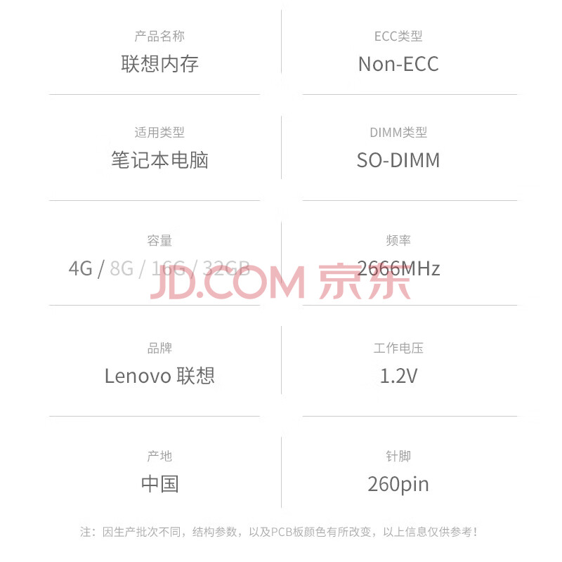 联想(Lenovo)8GB DDR4 2666 笔记本内存条