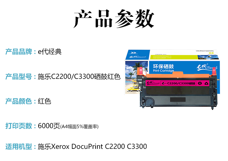 e代经典 施乐C2200/C3300硒鼓红色 (支)适用施乐Xerox DocuPrint C2200 C3300 CT350684