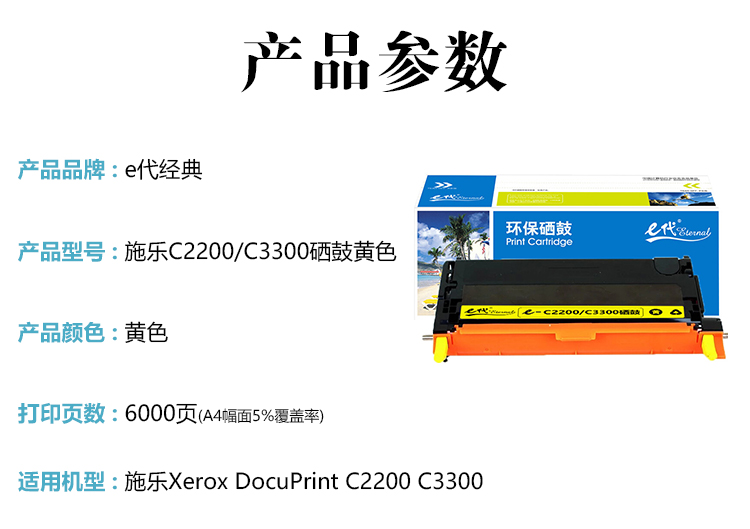 e代经典 施乐C2200/C3300硒鼓黄色(支) 适用施乐Xerox DocuPrint C2200 C3300 CT350685