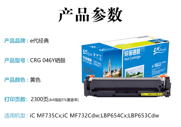 e代经典CRG 046Y佳能硒鼓黄(单位:支) (适用:佳能iC MF735Cx;iC MF732Cdw;LBP654Cx;LBP653Cdw)