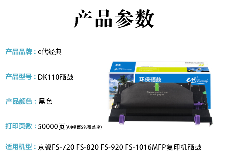 e代经典DK110京瓷鼓组件(不含粉盒)黑(支) (适用:京瓷FS-720 FS-820 FS-920 FS-1016MFP复印机鼓组件(不含粉盒))