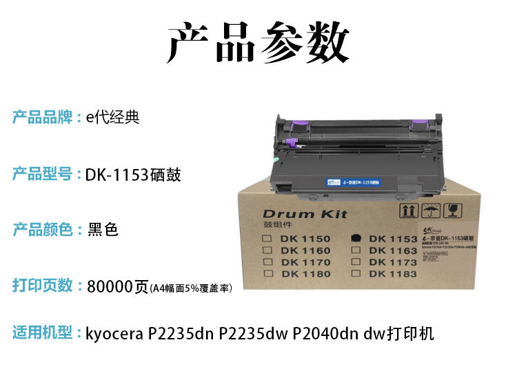 e代经典DK-1153京瓷鼓组件(不含粉盒)黑(支) (适用:京瓷kyocera P2235dn P2235dw P2040dn dw打印机)
