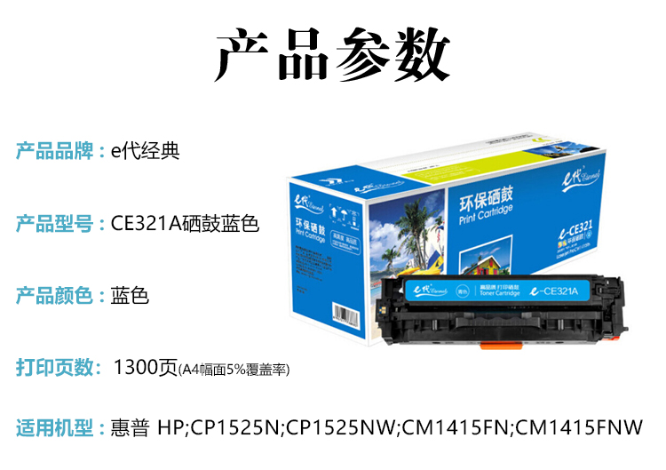e代经典HP CE321A硒鼓蓝(单位:支) (适用:惠普 HP;CP1525N;CP1525NW;CM1415FN;CM1415FNW)