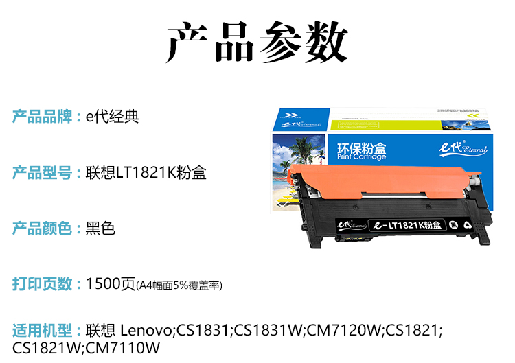 e代经典LT1821K联想粉盒(不含鼓组件)黑(单位:支)适用CS1831 CS1831W CM7120W CS1821 CS1821W CM7110W打印机