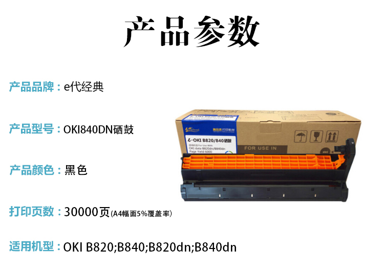 e代经典OKI B820/840DN硒鼓(鼓粉一体)单只装黑色(支)适用机型:OKIB820;B840;B820dn;B840dn打印量:30000